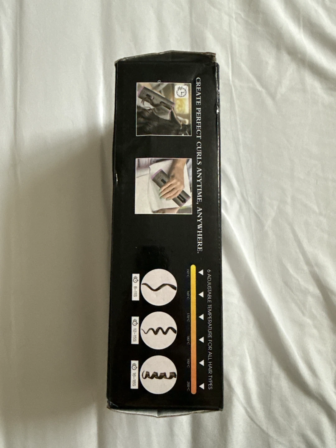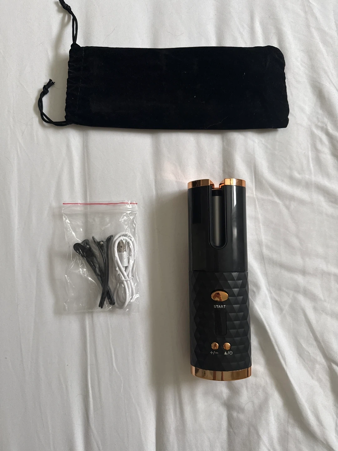 Selling a brand new, cordless automatic hair curler! It comes in the original box and includes all the components. Create perfect curls anytime, anywhere. It also has 6 adjustable temperature settings for all hair types, so you can find the perfect heat for your hair. It also includes a carrying bag and charging cable
