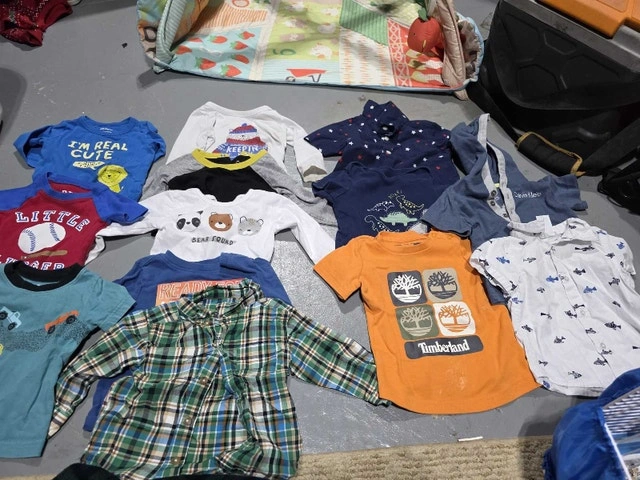 This is a lot of used baby clothes, perfect for your little one aged 6-12 months! There are a variety of shirts, long sleeves, and button-ups in this lot. * Variety of Styles * Good Condition * 6-12 Month Sizing If the ad is still up, the item is still available!