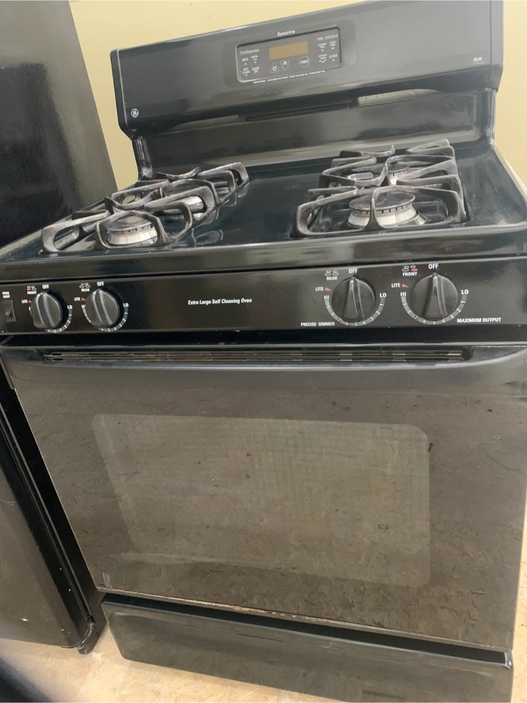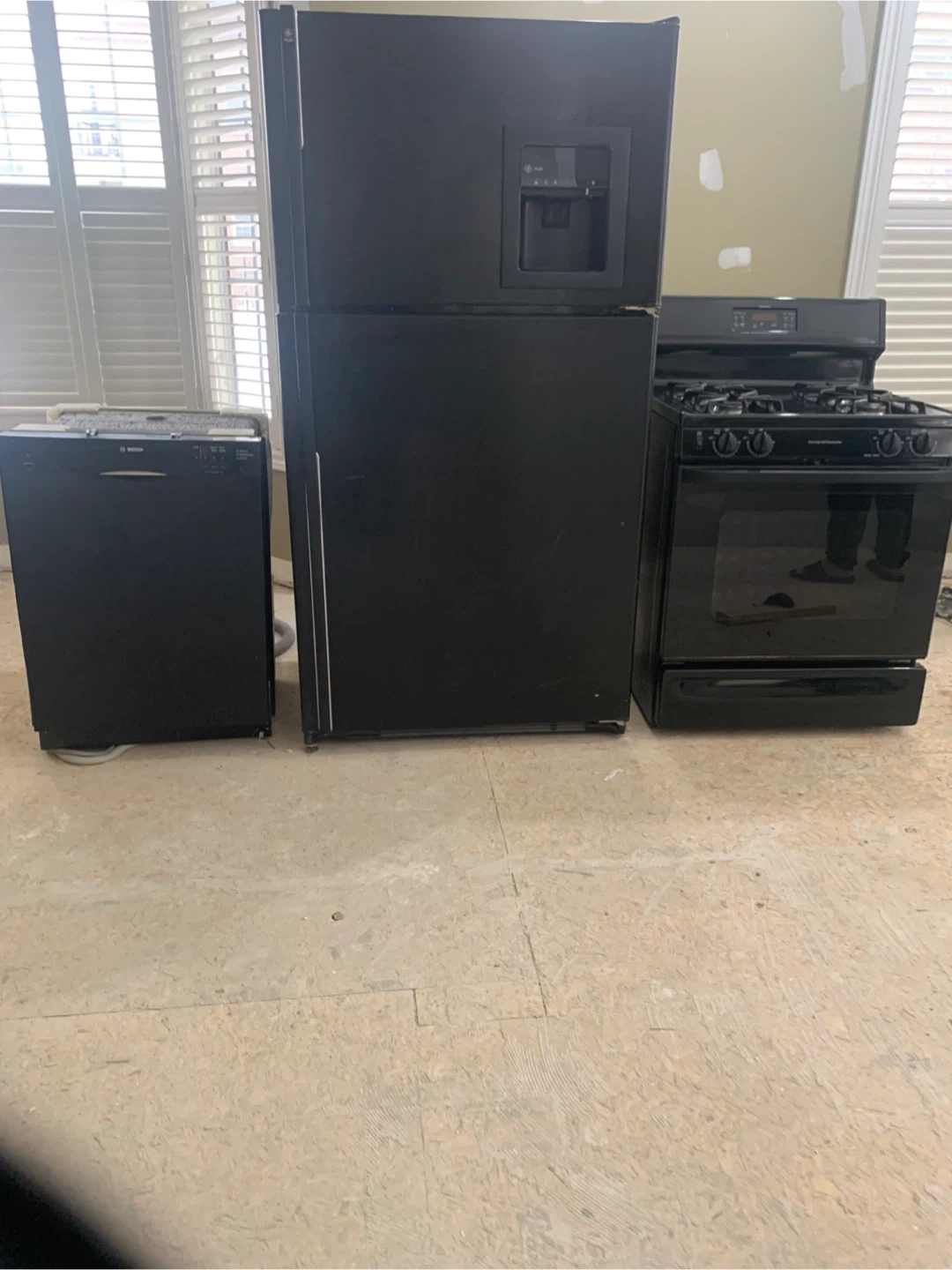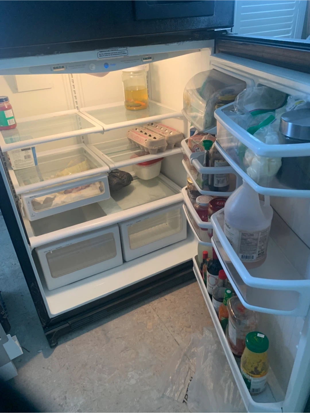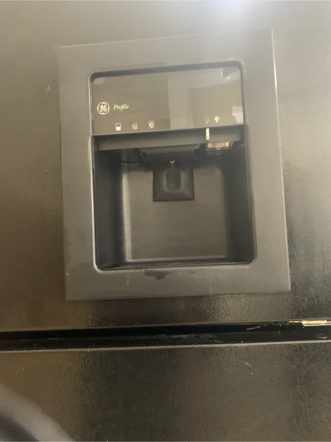 Selling a GE Profile refrigerator in black. It features a water dispenser. It's in good condition and ready for a new home!