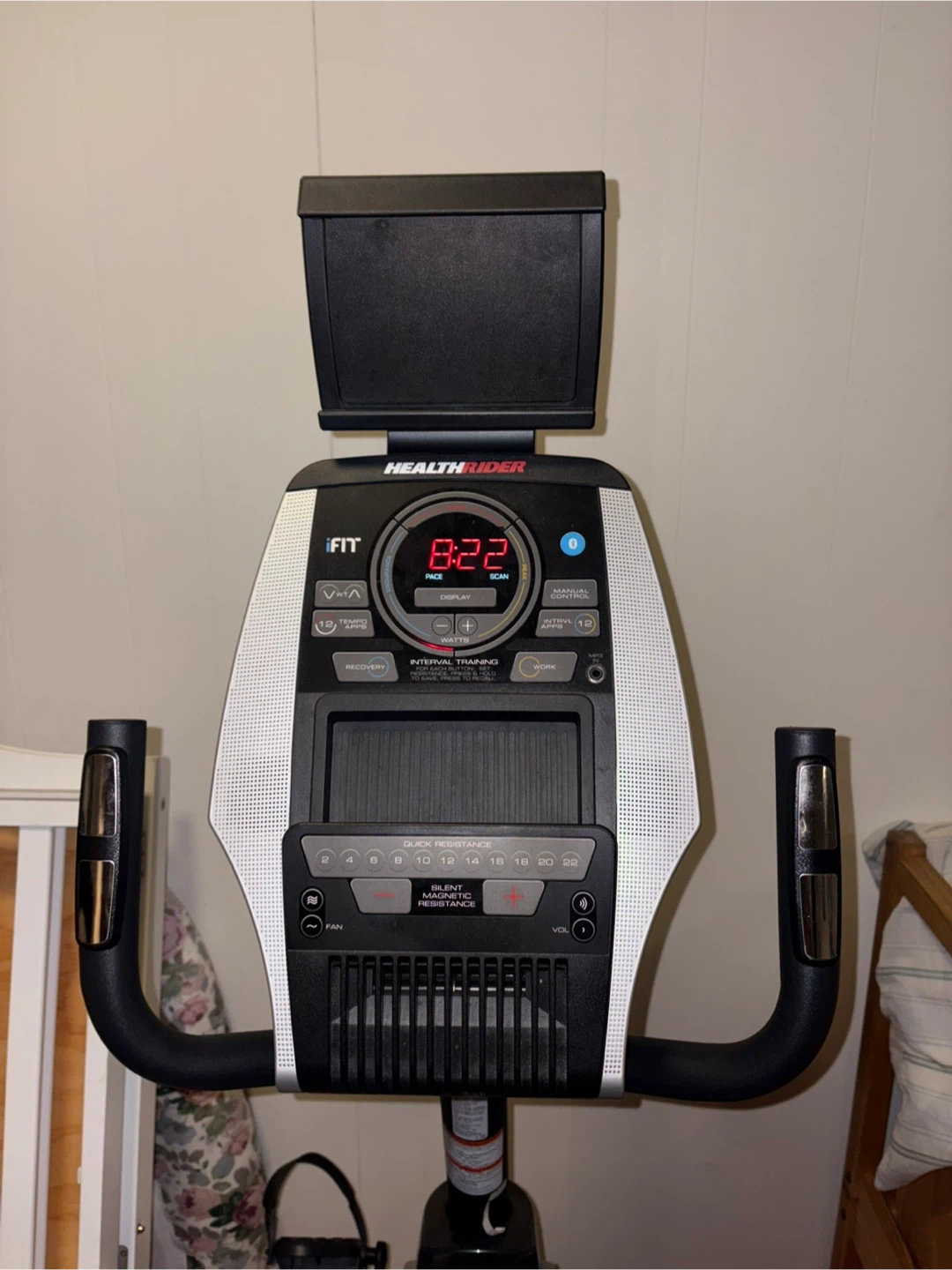 Great condition! Rarely used HealthRider H30x Exercise Bike. Lots of features including adjustable seat, adjustable resistance levels, and heart rate monitoring. Perfect for getting a workout in at home, especially during these colder months.