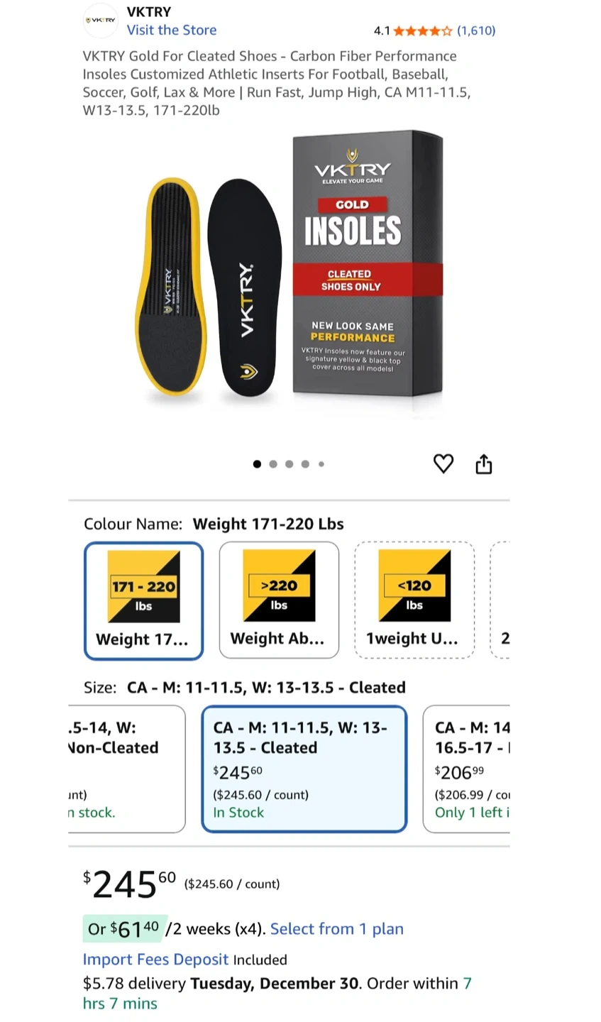 I have a new pair of VKTRY Gold Cleated Insoles for sale! These are size CA - M: 8-8.5, W: 10-10.5.,