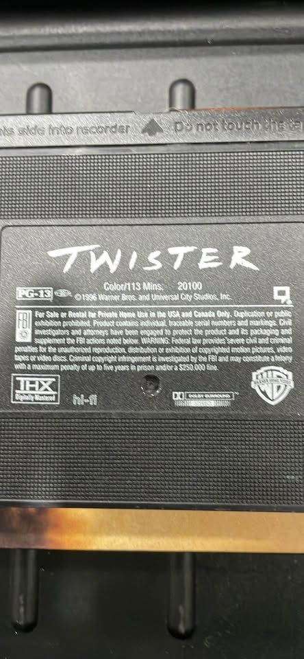 I have the original Twister movie on VHS with Helen Hunt and Bill Paxton. I assume it’s in working condition or we would not have kept it. Let me know if you have any questions, it’s more of a vintage piece than anything since it’s VHS. It can be picked up around the corner of Wellington and seminary.