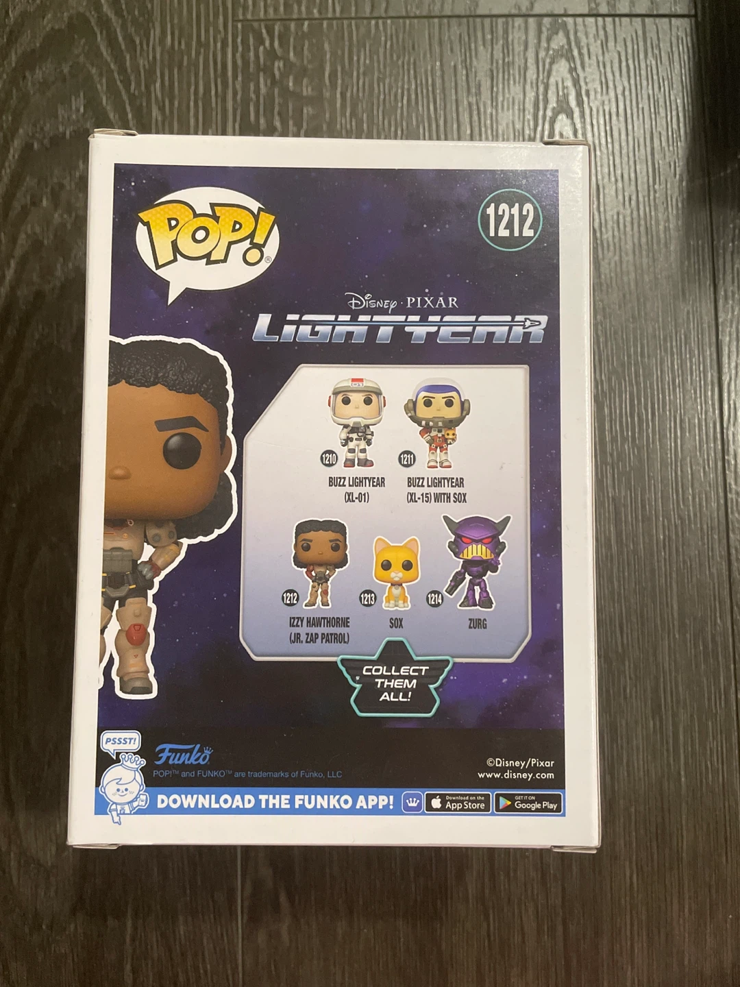 Selling a Funko Pop! figure of Izzy Hawthorne Jr. Zap Patrol from Disney Pixar's Lightyear. The figure is number 1212 in the Pop! series. Comes in the original box!