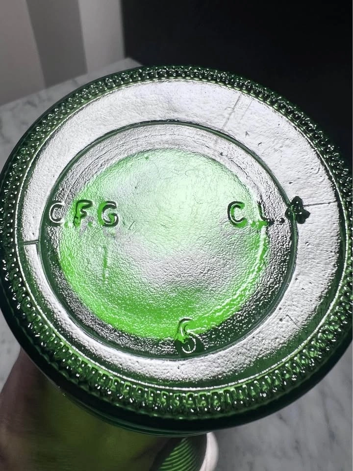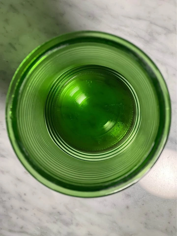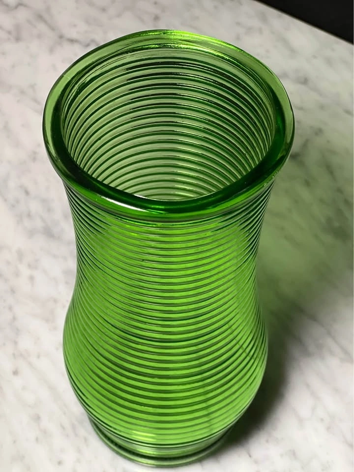 Vintage CFG green horizontal ribbed glass vase
