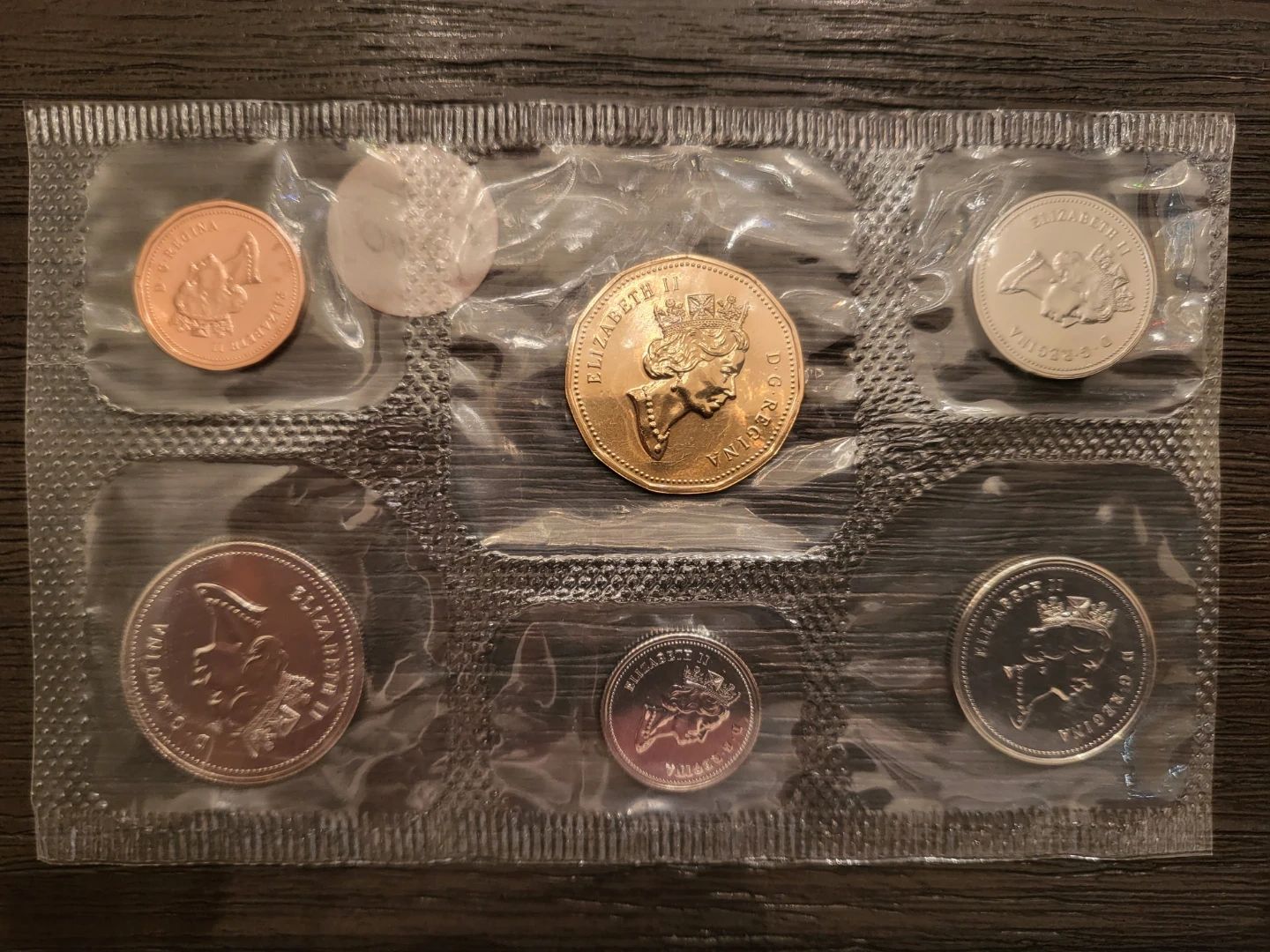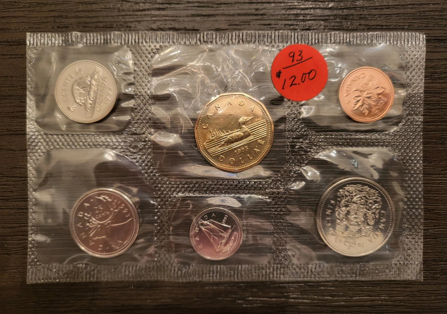 1993 uncirculated coin set from the Royal Canadian Mint. It's still sealed in its original packaging and includes the specifications insert. A great addition for any coin collector!