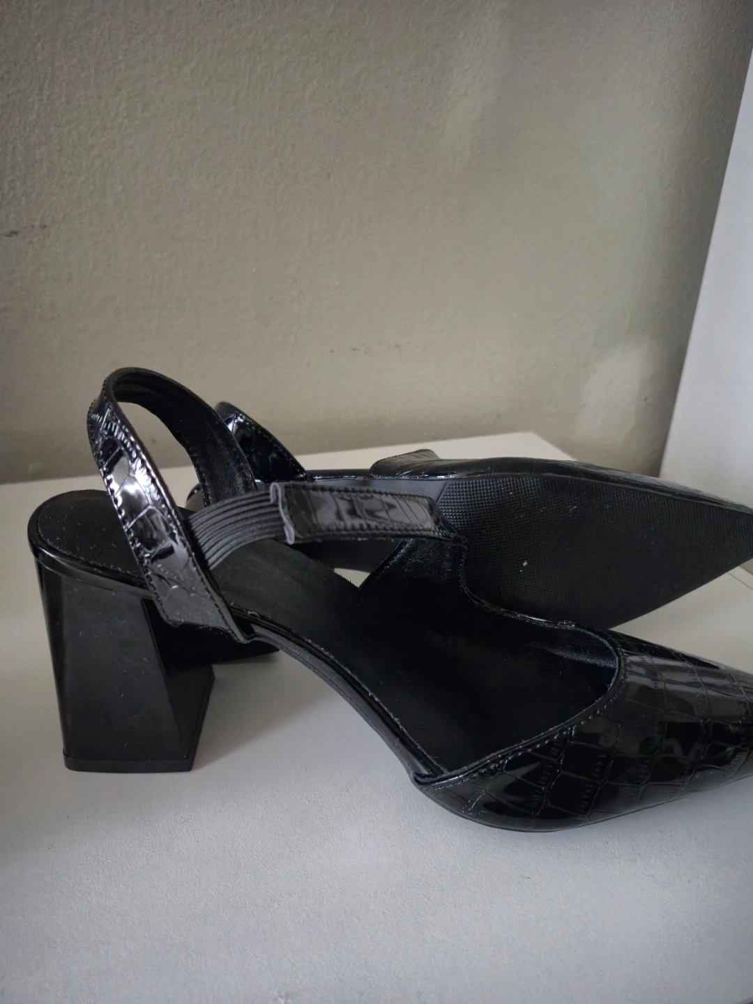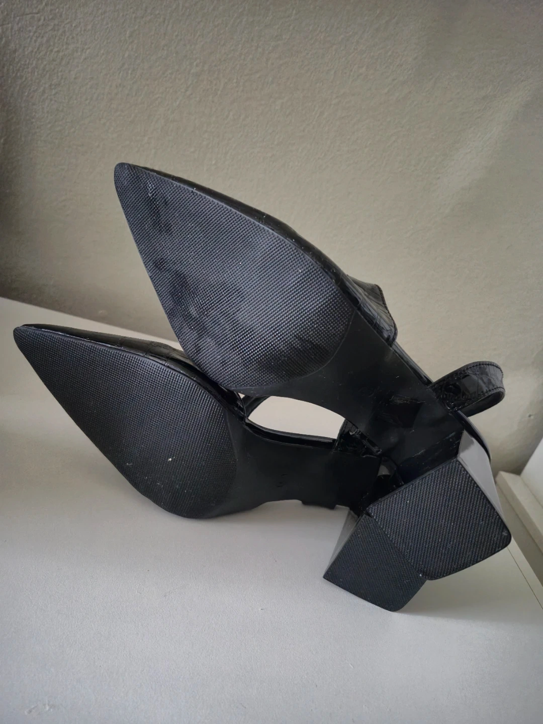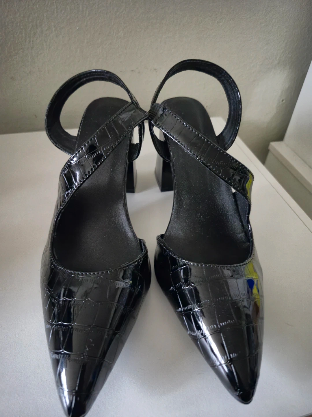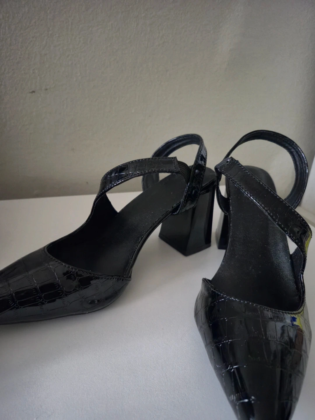 Selling a pair of black heeled slingbacks. They are in great condition and would be perfect for a night out or a special occasion. Size 9.5.