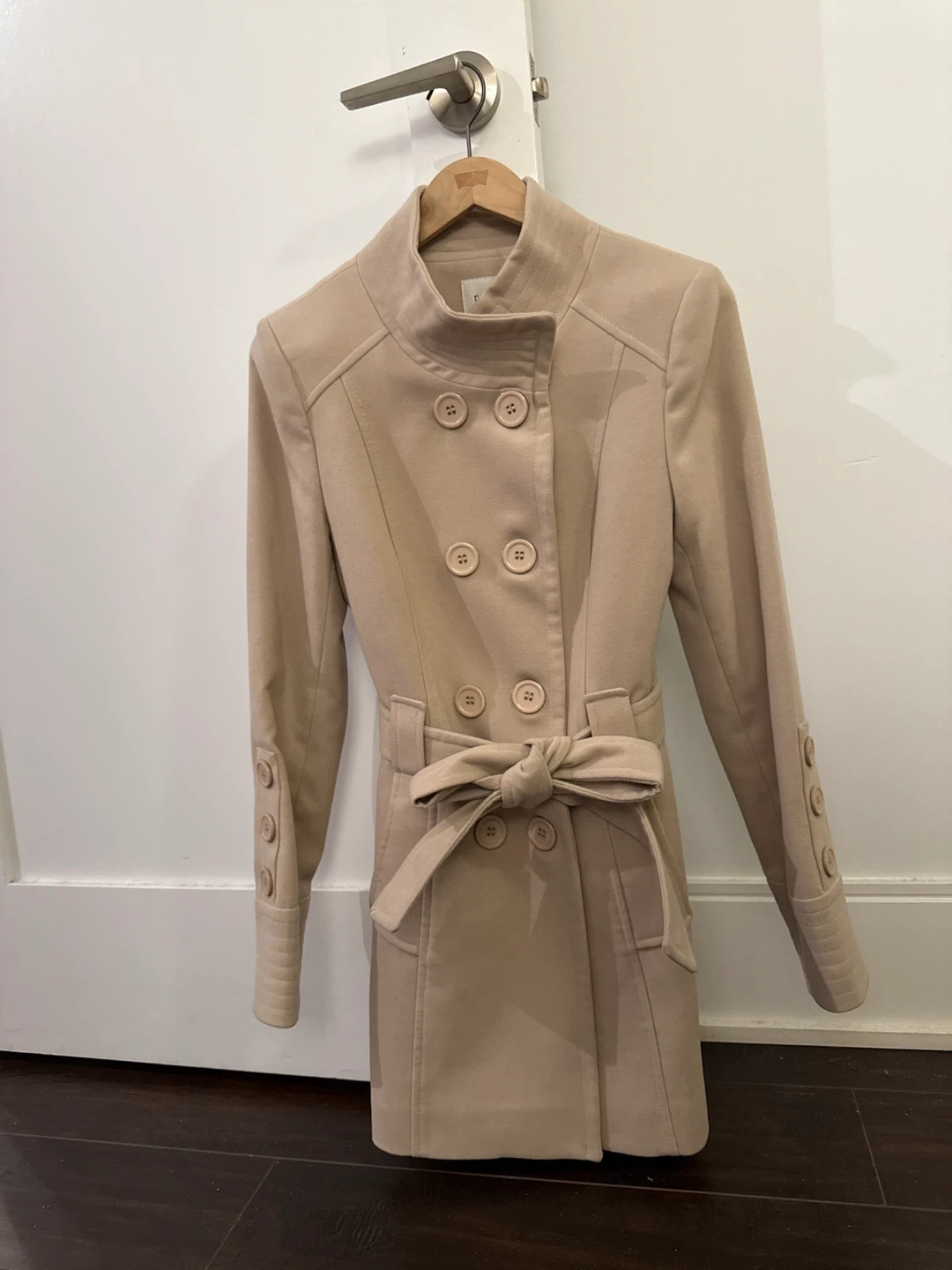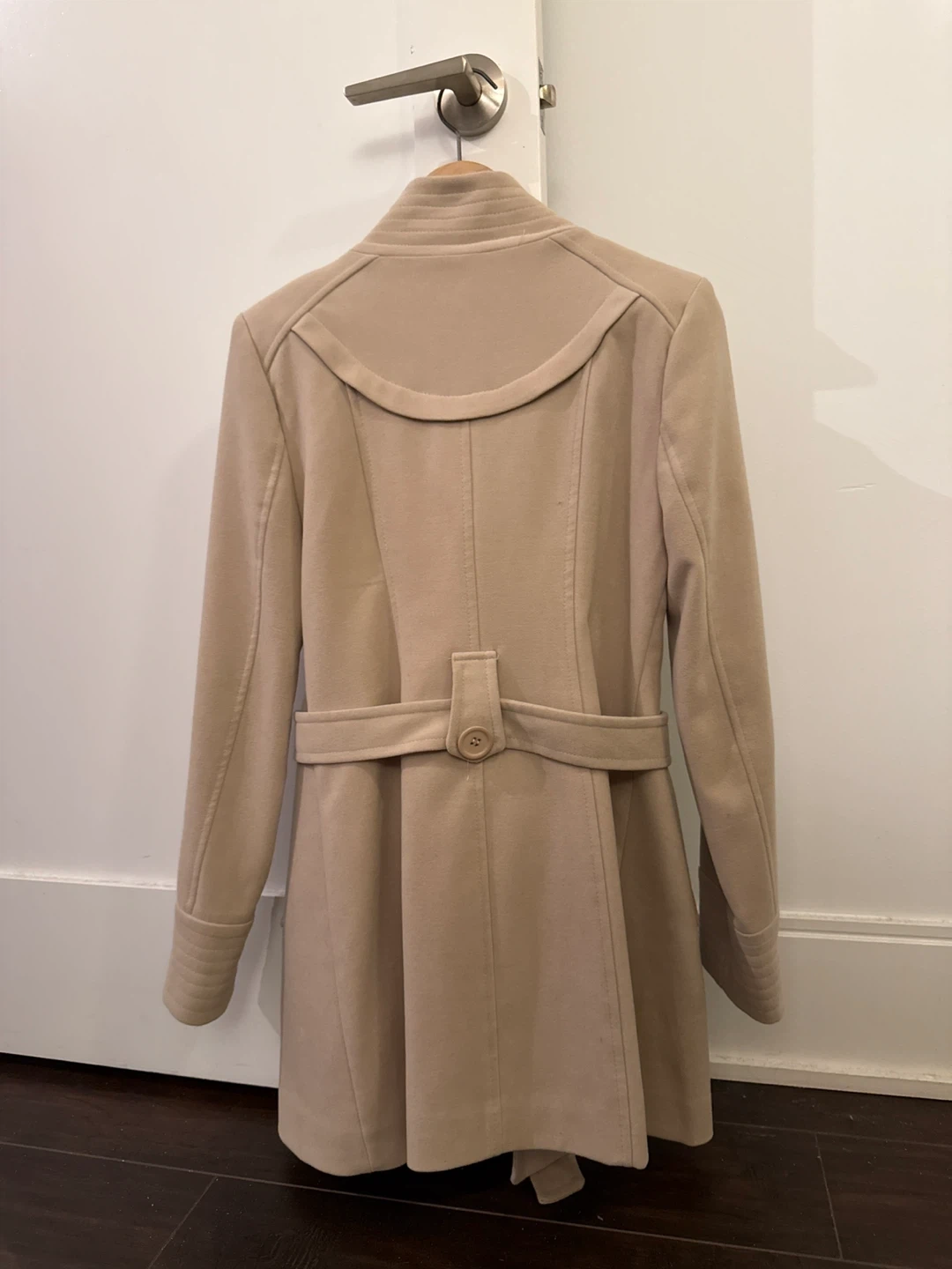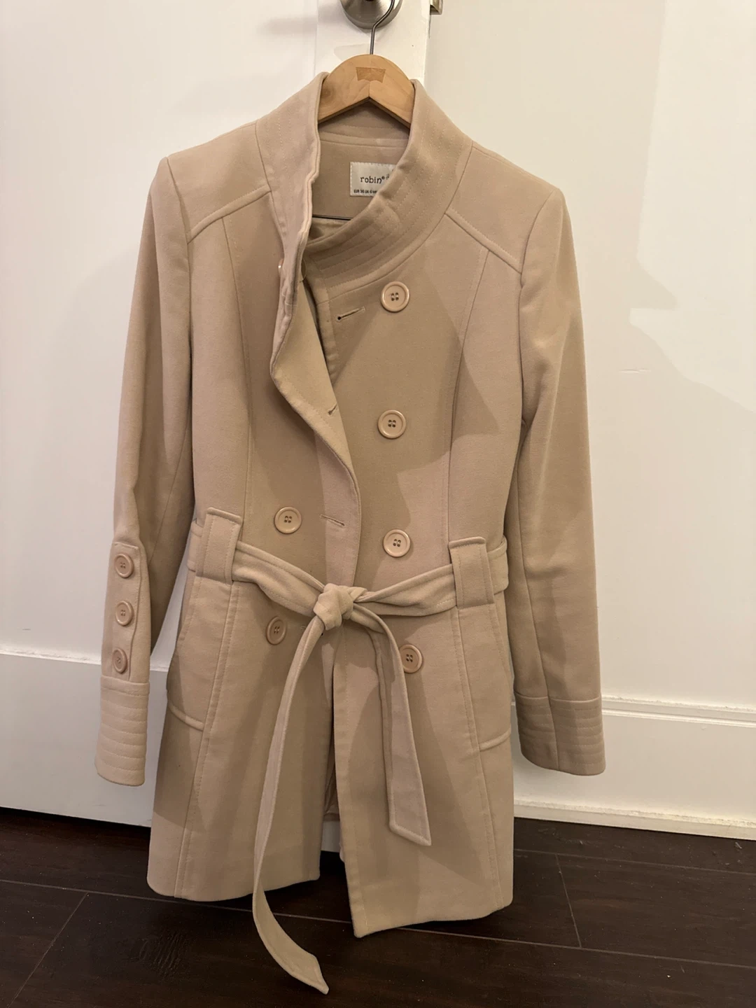 Elevate your cold-weather style with this chic Robin K women’s coat in a timeless beige shade. Designed with a flattering belted waist, it beautifully enhances your silhouette while adding an elegant, polished touch to any outfit. Both warm and stylish, it’s the perfect go-to coat for cooler days. Size 36.