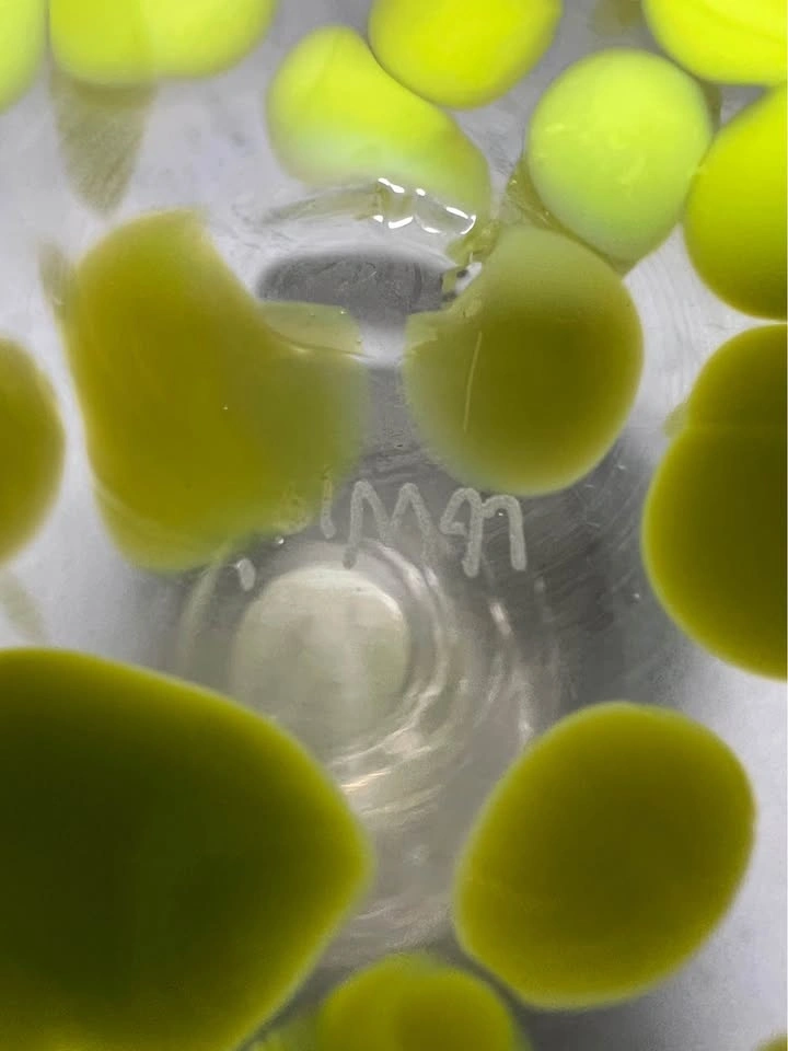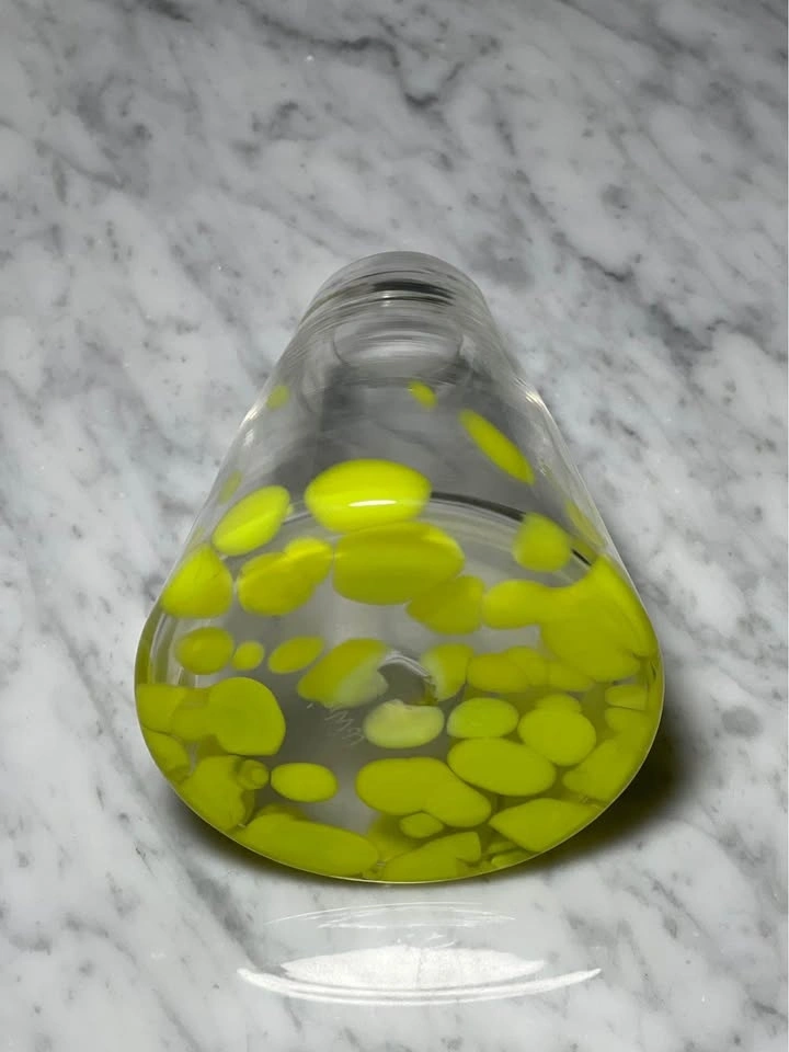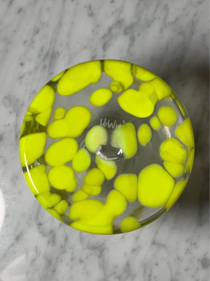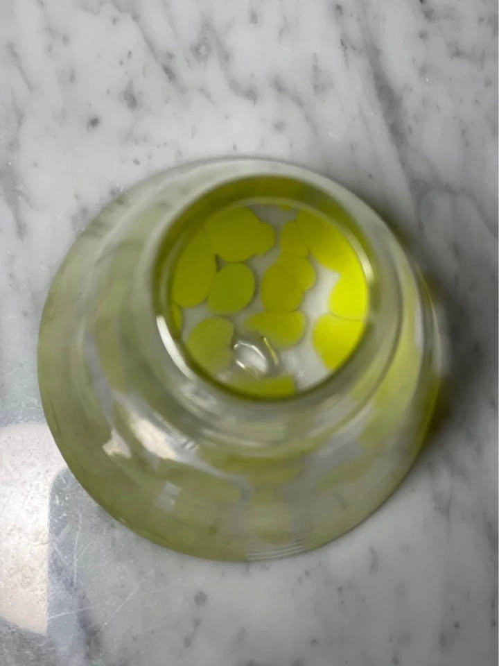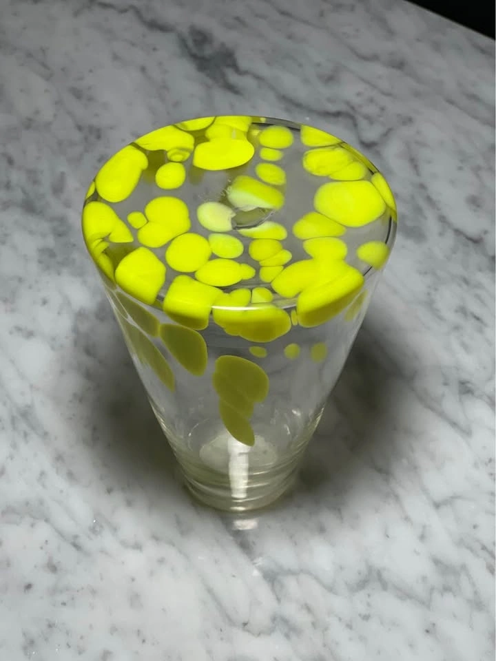 Color: Clear glass with a vibrant, opaque lime or neon green spot pattern