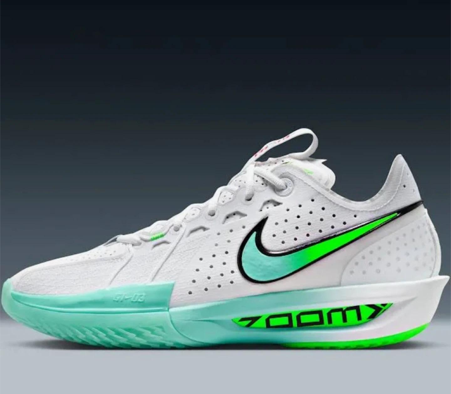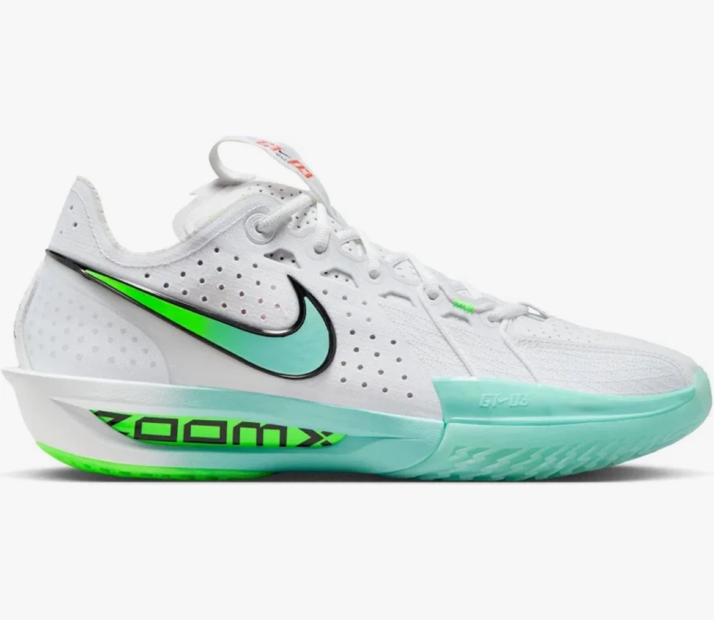 Selling Nike Zoom GT Cut 3 shoes in a fresh white and green colourway. These shoes are designed for performance and style, featuring Zoom Air cushioning for ultimate comfort and responsiveness. Perfect for basketball and have excellent traction test result. Bought from Nike shop.