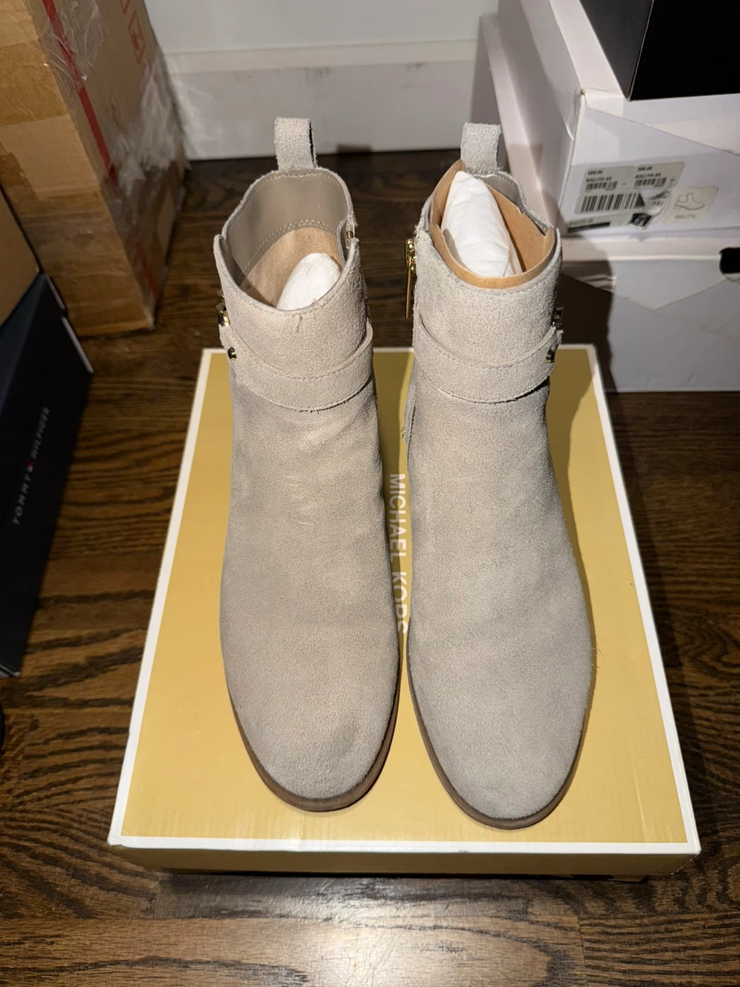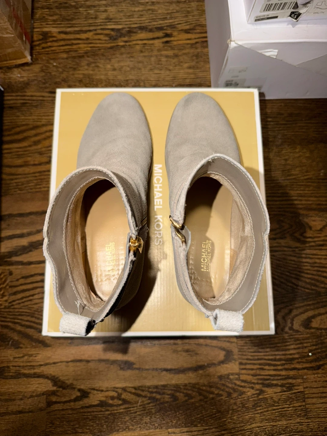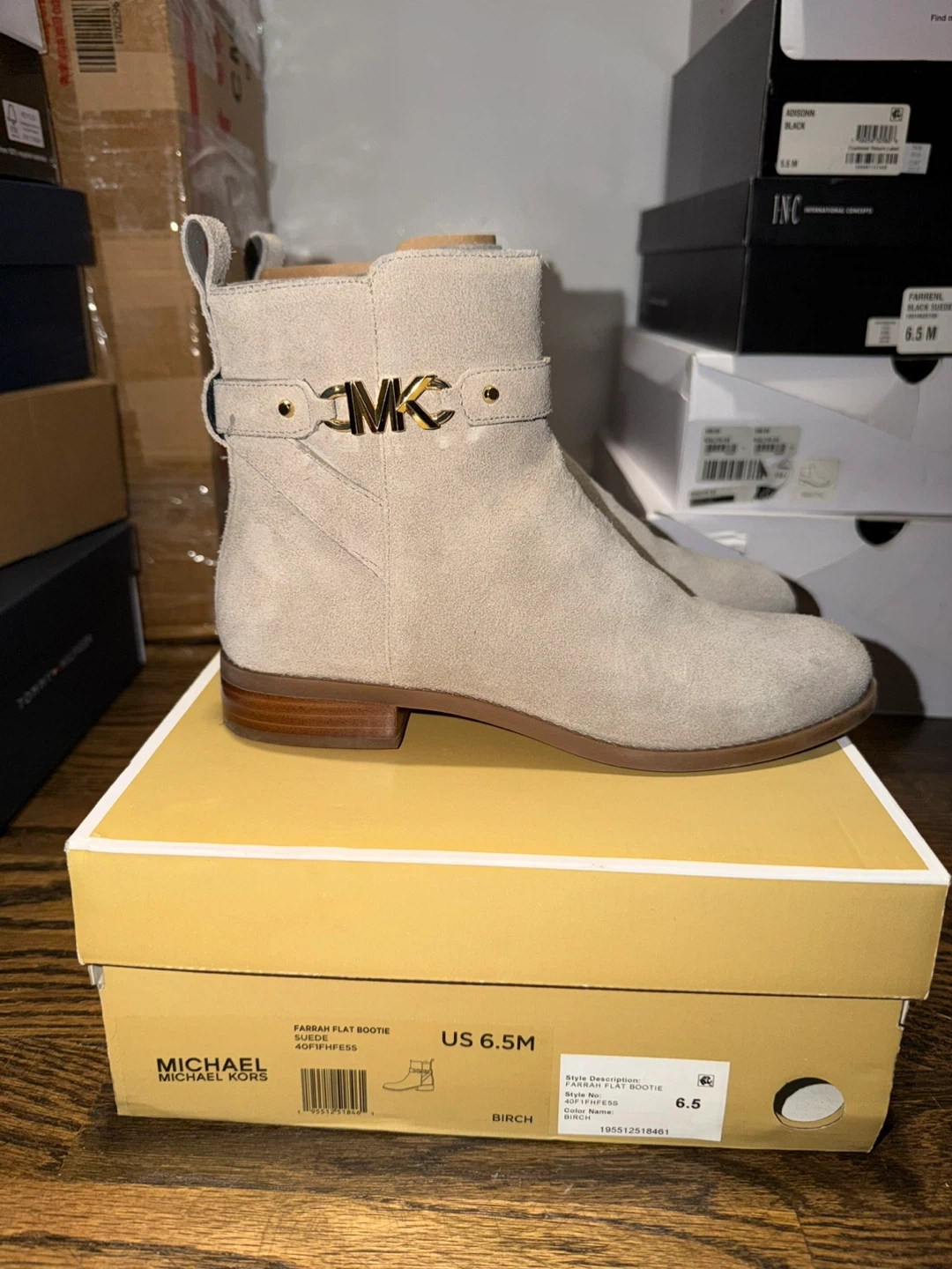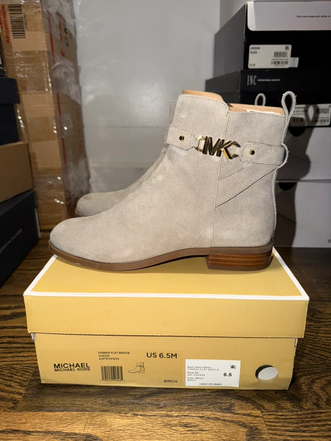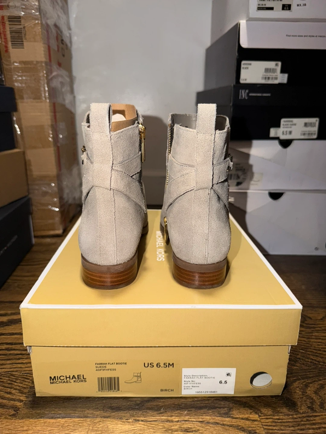 Selling a pair of Michael Kors Farrah Flat Booties in a size 6.5. The color is Birch, a lovely neutral shade. These come with the original box. Used once.