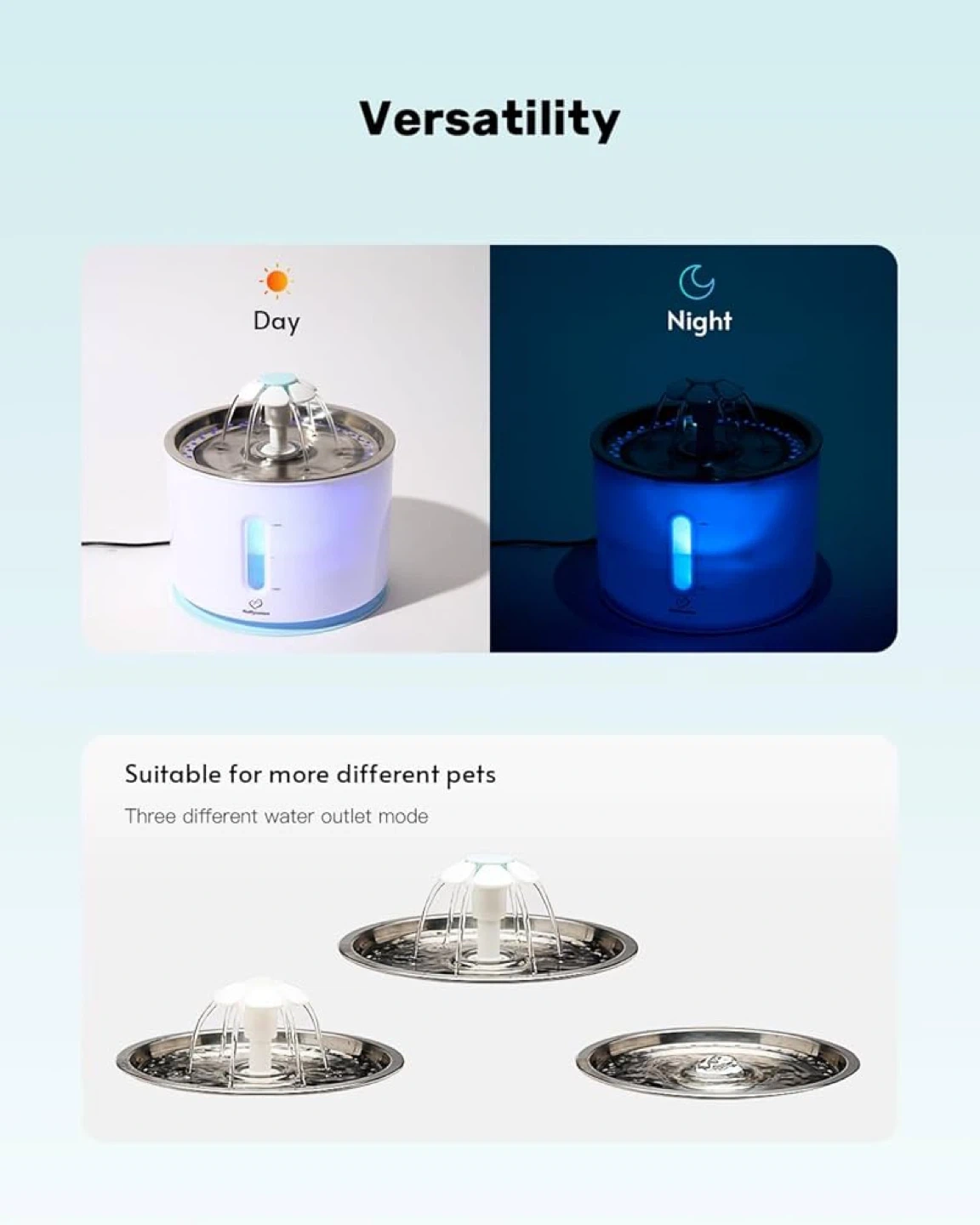 • Water level window: Stainless steel top pet fountain features water level window that will indicate the level of the water. It's easier and convenient for you to see when it's needed to be refilled.