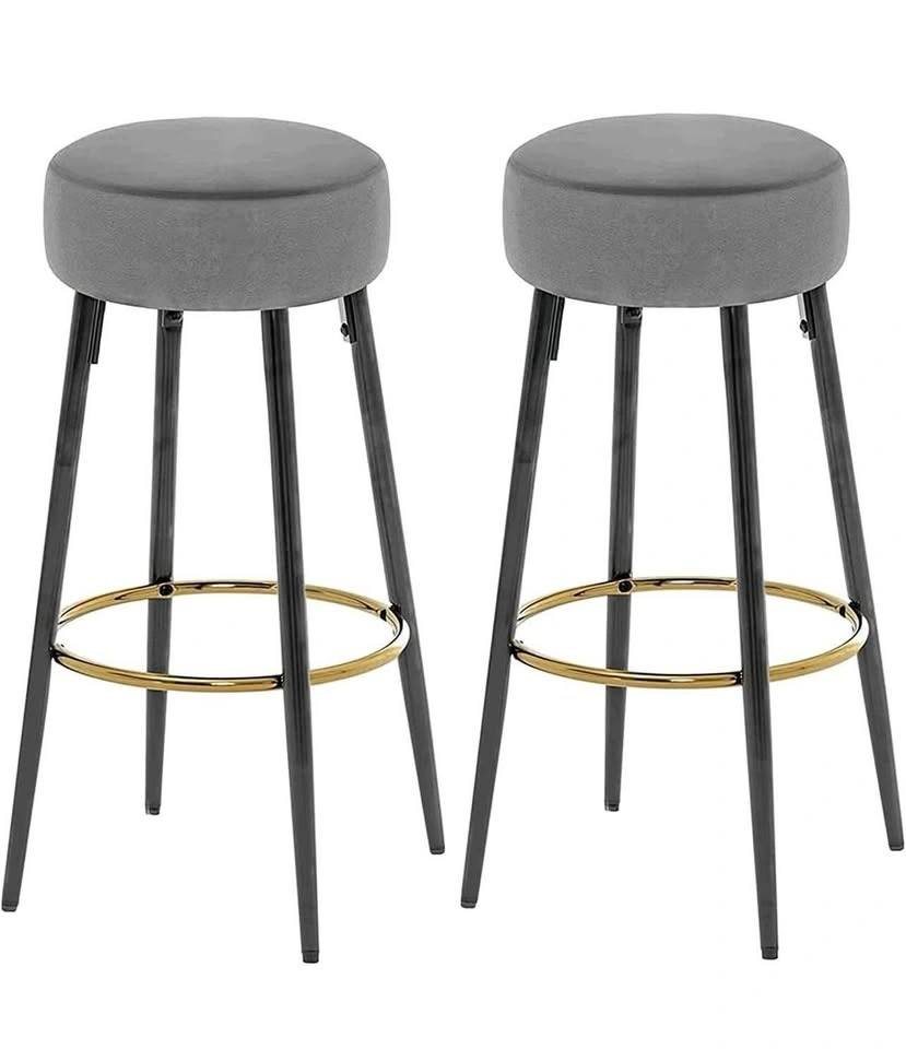 Gray bar stools (chairs) set of 2 modern round velvet bar stools for kitchen, dining, coffee shop, bar , home balcony with 250 Lbs capacity.