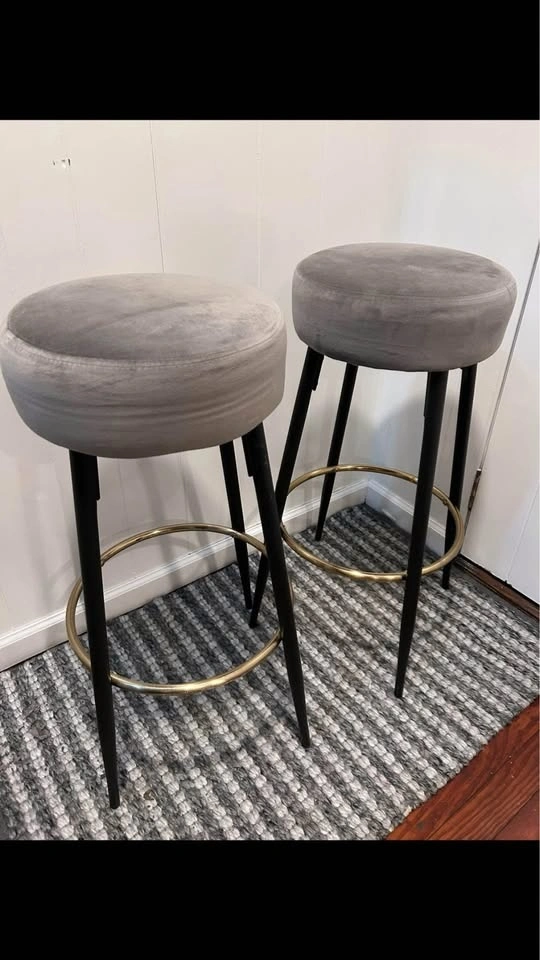 Bar stools set of 2 with velvet gray seat high stools with footstool.