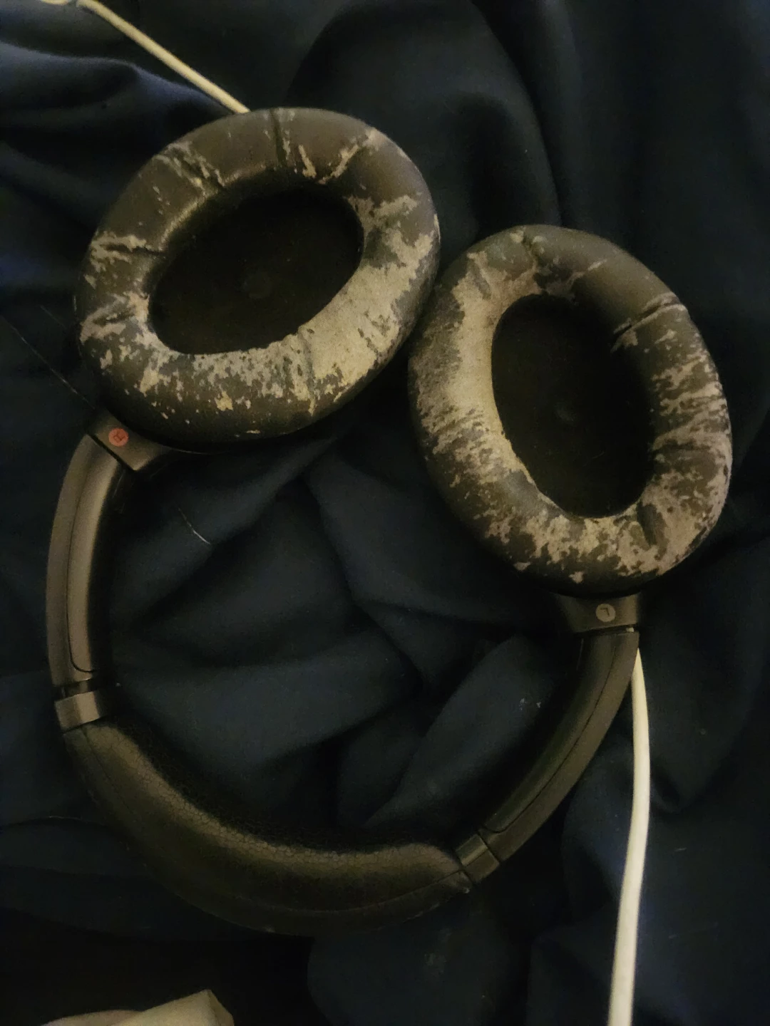 Selling a pair of Sony WH-1000XM3 wireless noise-cancelling headphones. As you can see from the photos, the earcups are quite worn. Still functional! The sound is still good it just needs the cushion replace