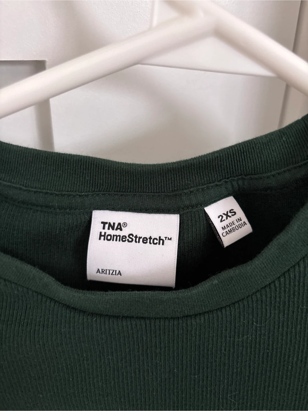Selling a TNA HomeStretch top from Aritzia in size 2XS. It's a dark green colour and in excellent condition!