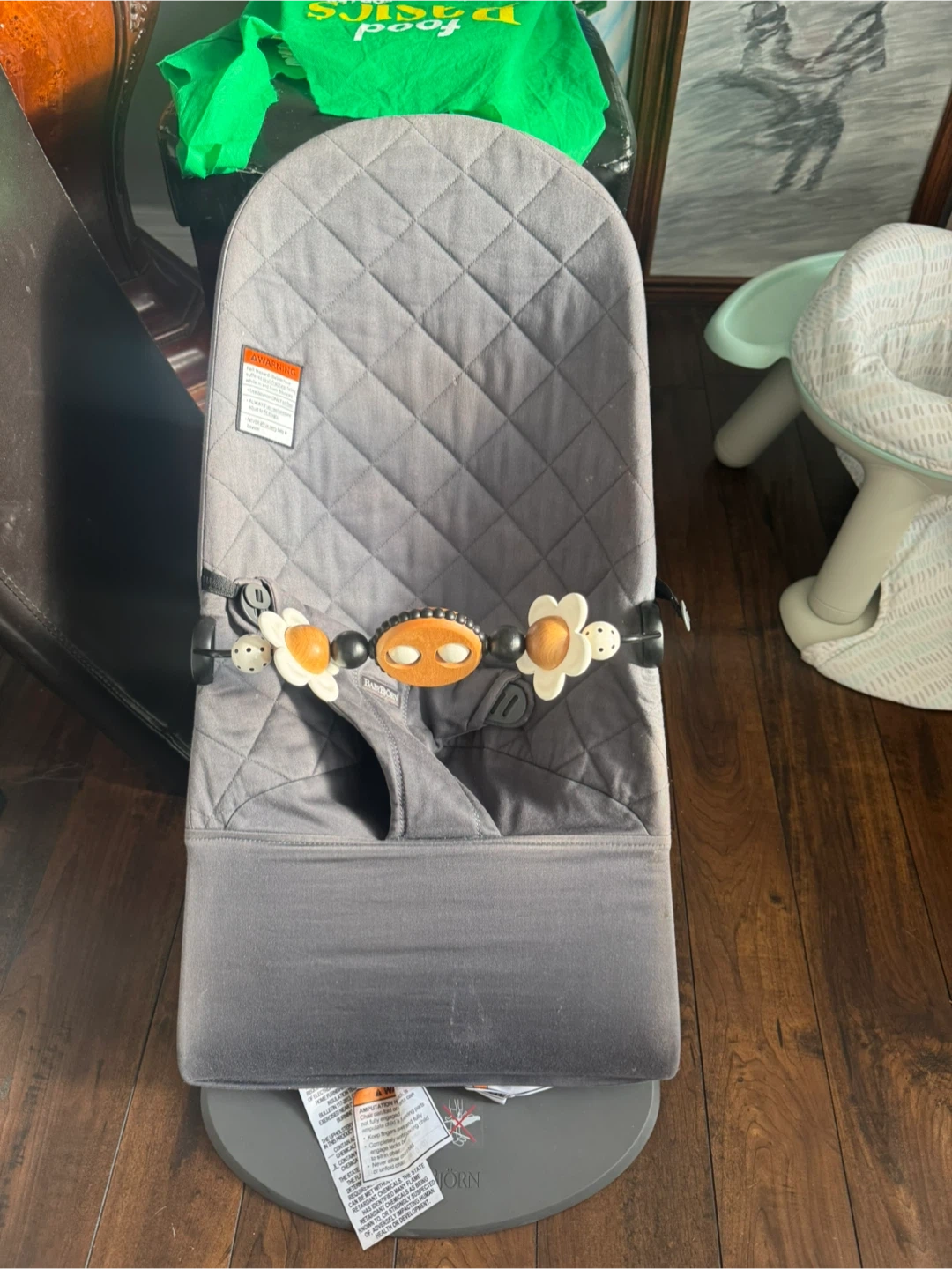 Selling a BabyBjörn bouncer in grey! It's in good condition and ready for a new little one. This bouncer provides a safe and comfortable spot for your baby to relax and play.