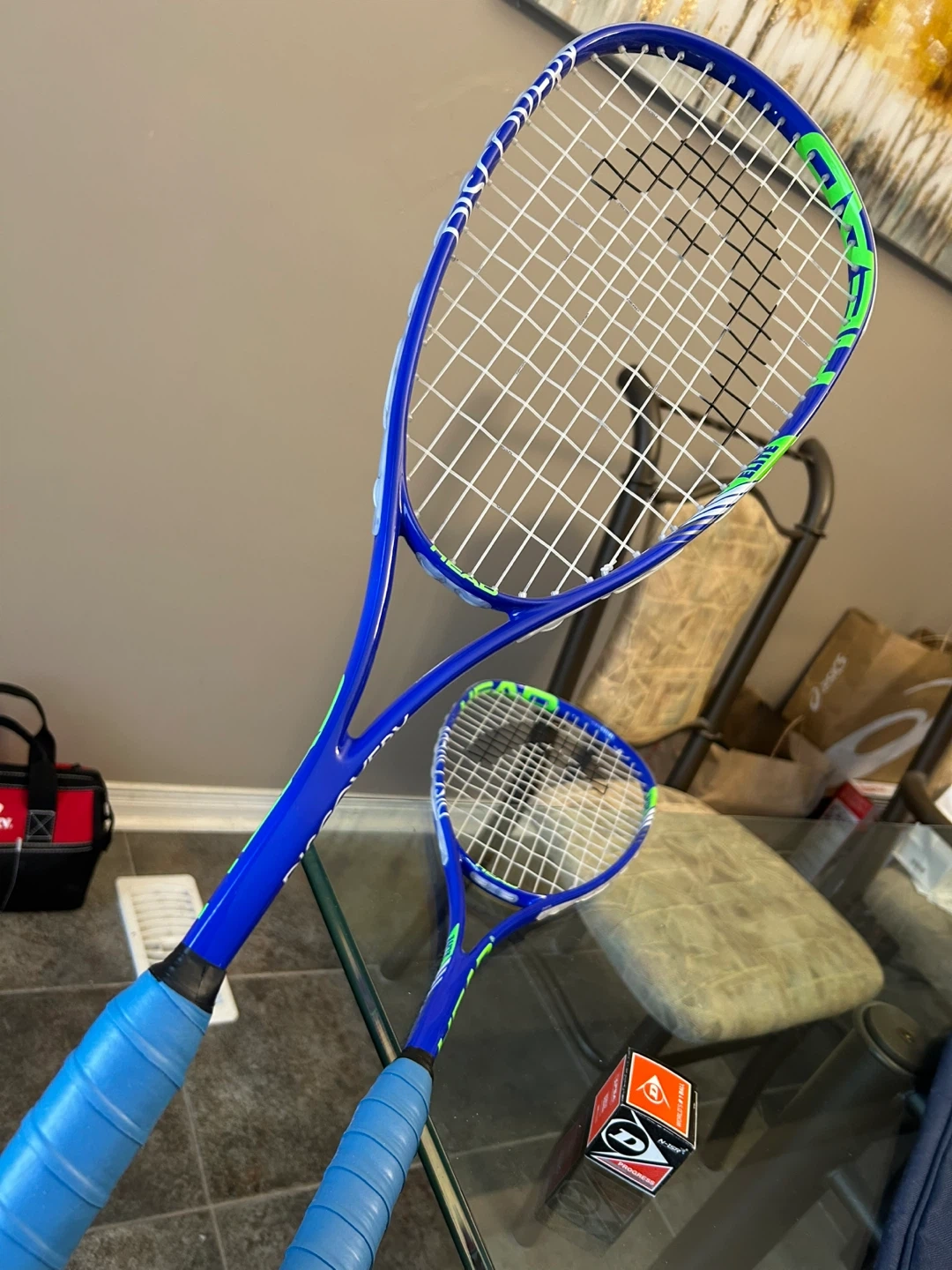 The HEAD Discovery Elite Squash Racquet is perfect for Progress Beginners. Easier for controlling. Like New, $35 each, $70 for 2 racquets with free SportLife Carrying Bag and Dunlop Red Dot Squash Ball (1 New)
