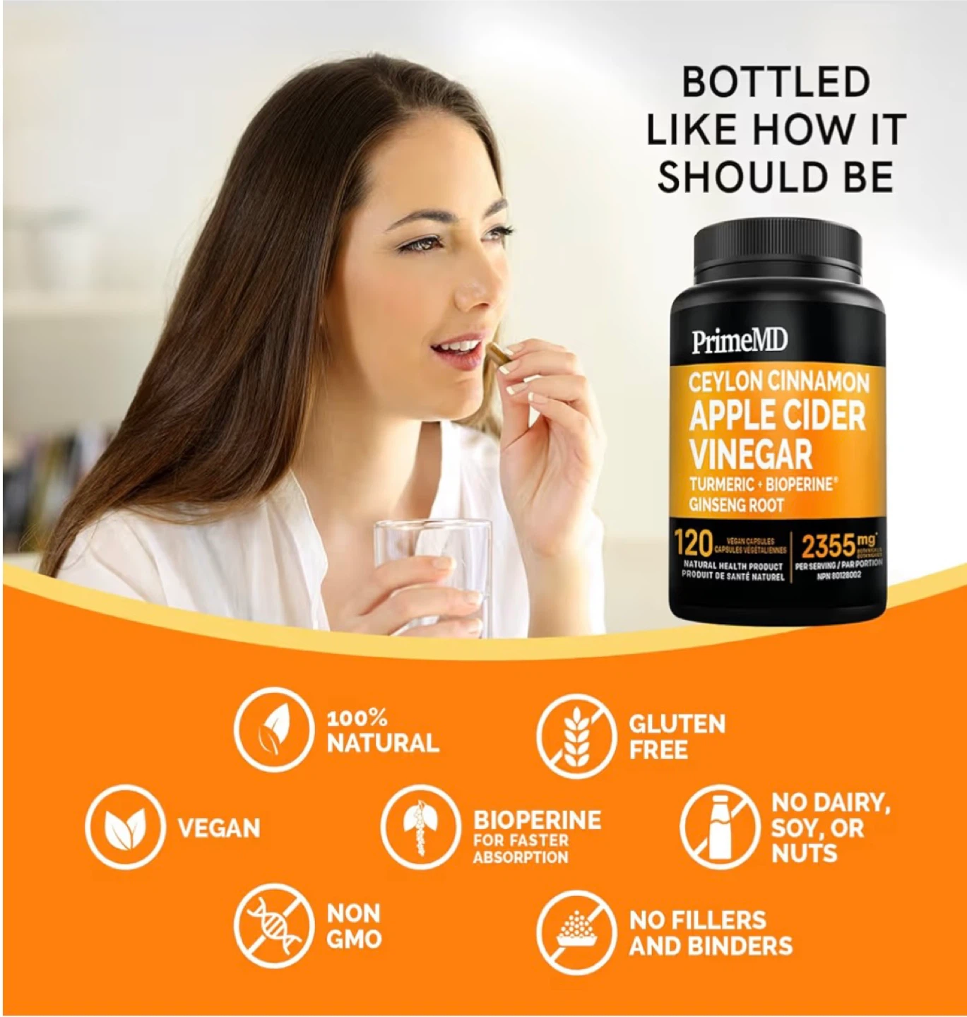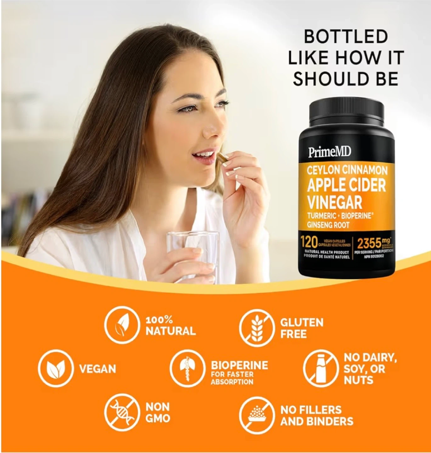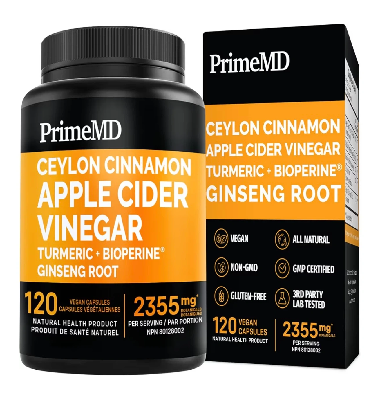 I'm selling a brand new bottle of PrimeMD Ceylon Cinnamon Apple Cider Vinegar capsules! It contains 120 vegan capsules with turmeric, bioperine, and ginseng root.