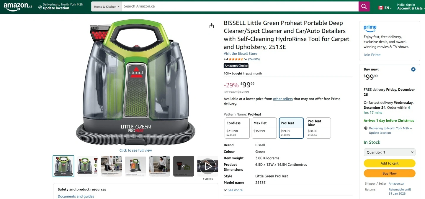 BISSELL Little Green Proheat Portable Deep Cleaner/ Spot Cleaner and Car/ Auto Detailers with Self-Cleaning HydroRinse Tool for Carpet and Upholstery, 2513E