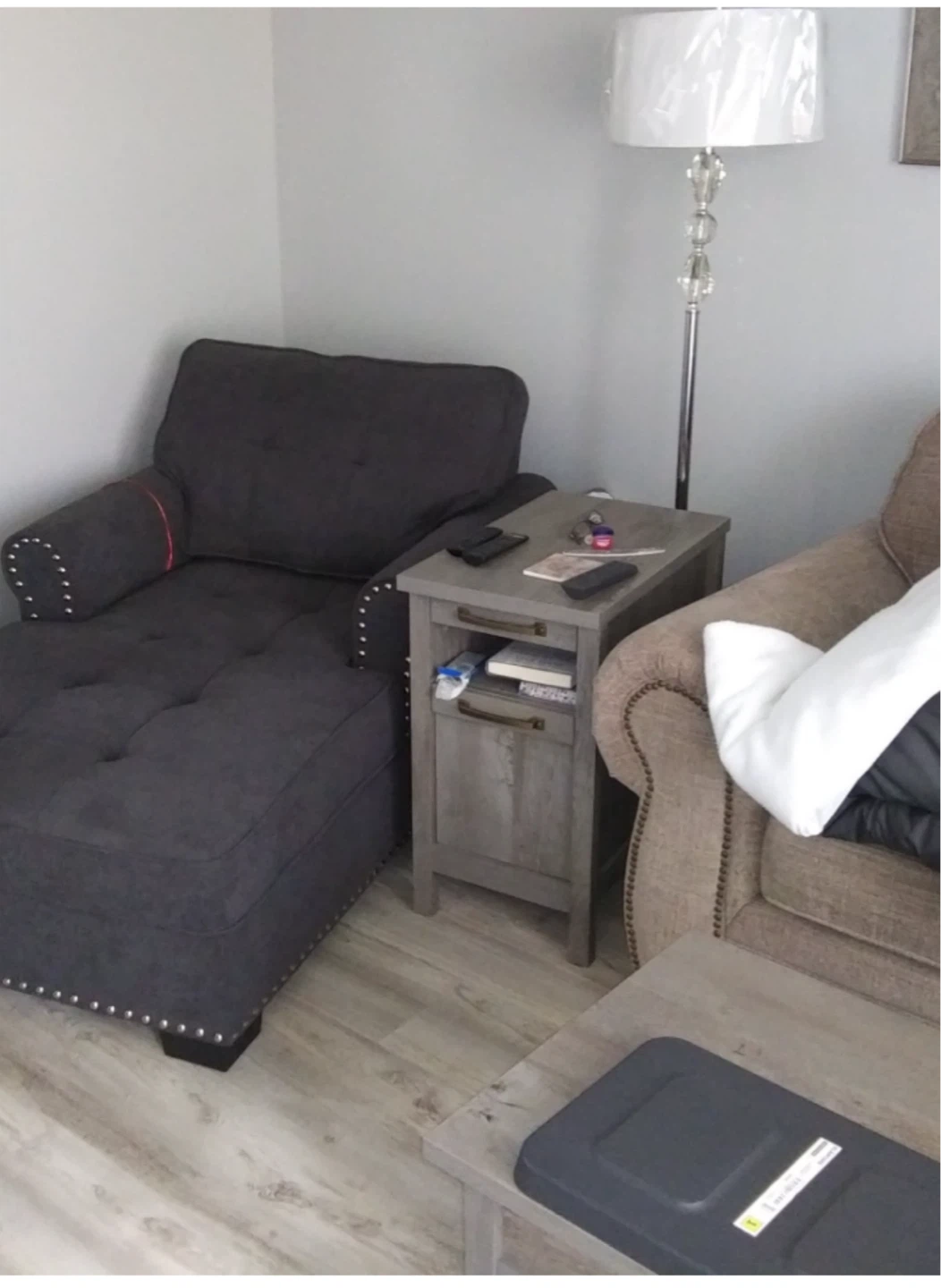 Add a touch of elegance to your living space with this stylish gray floor lamp! It features beautiful crystal accents that catch the light and create a warm, inviting atmosphere. Perfect for any room in your home