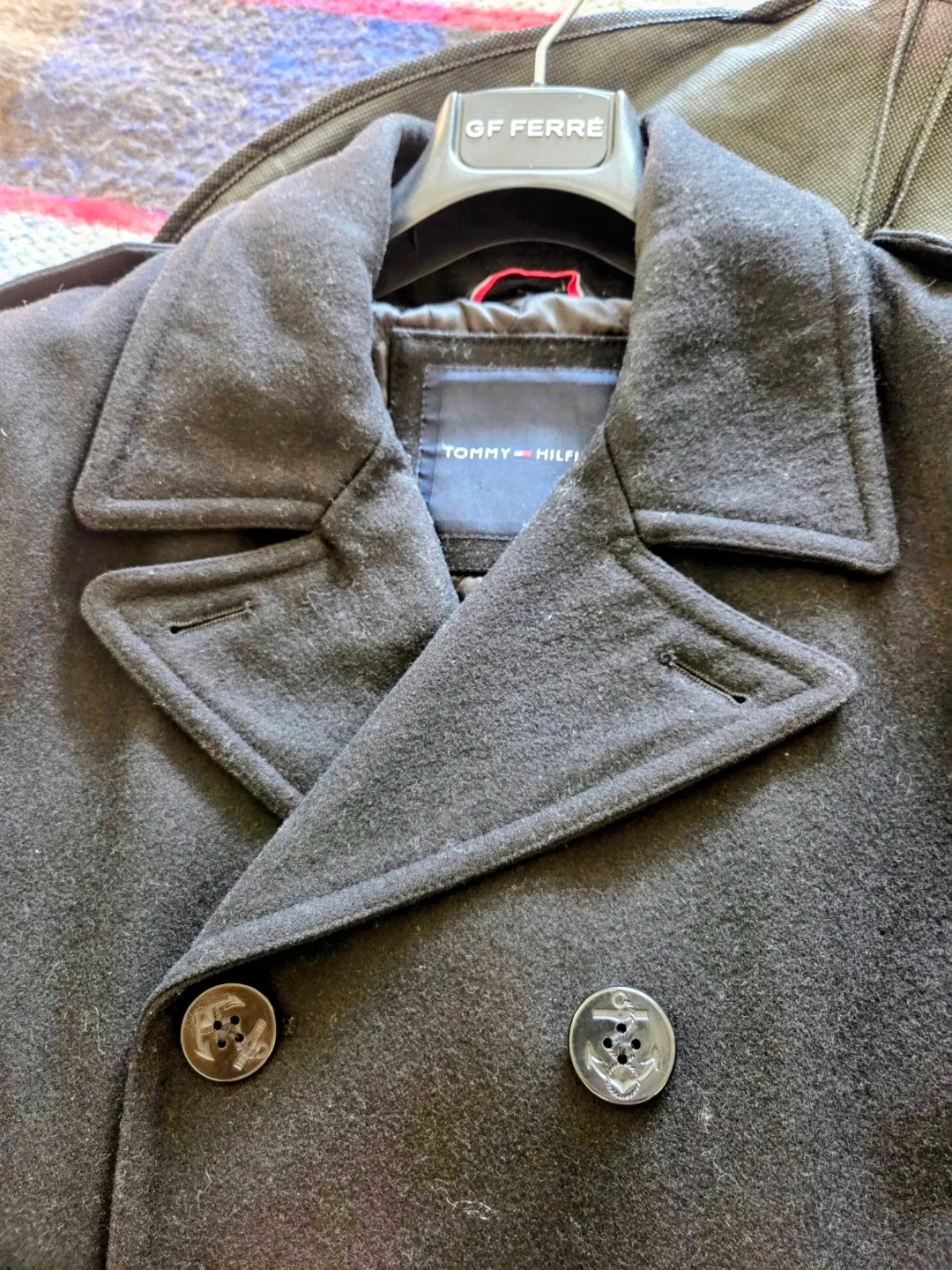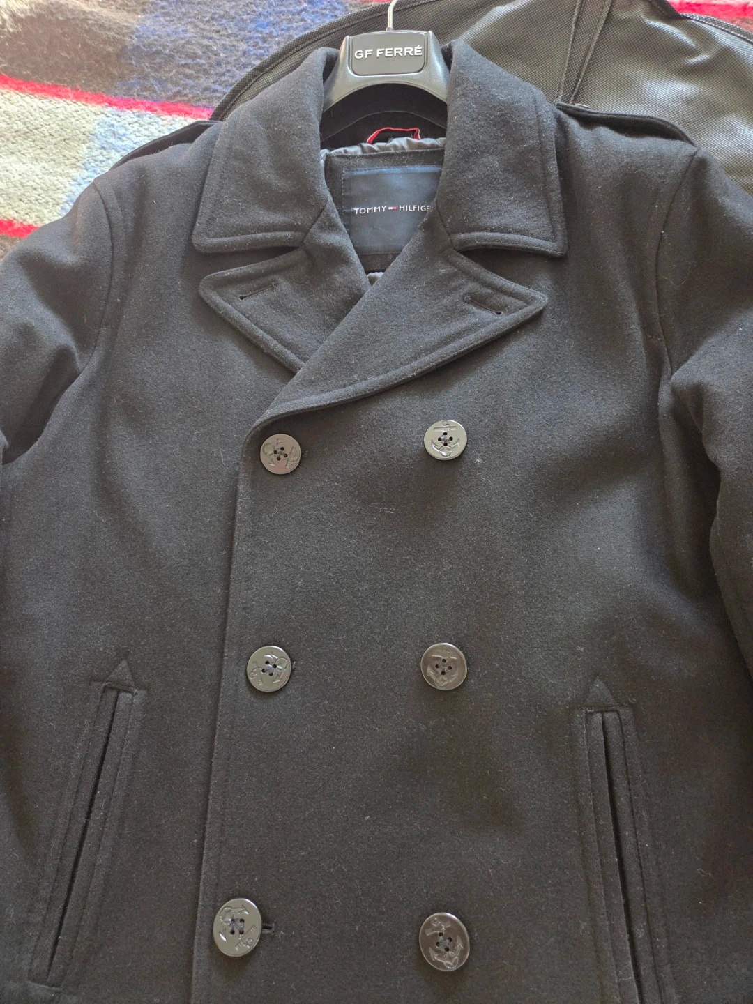 Selling a classic black pea coat from Tommy Hilfiger. It's in great condition and ready for the cooler weather!