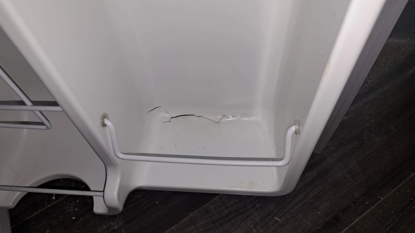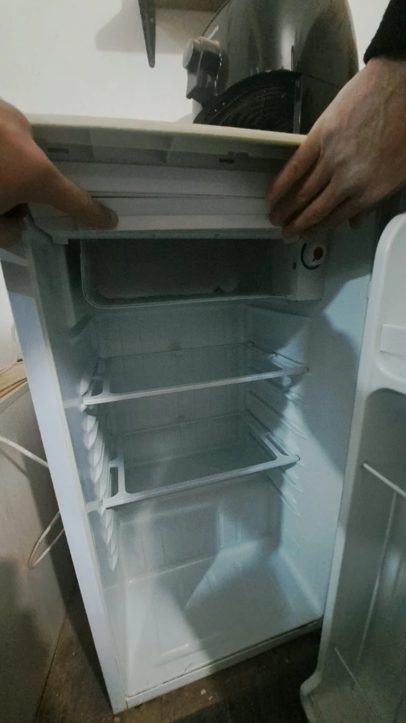 Selling a Danby compact refrigerator. It's white and would be perfect for a small space. There is a crack in the plastic inside.