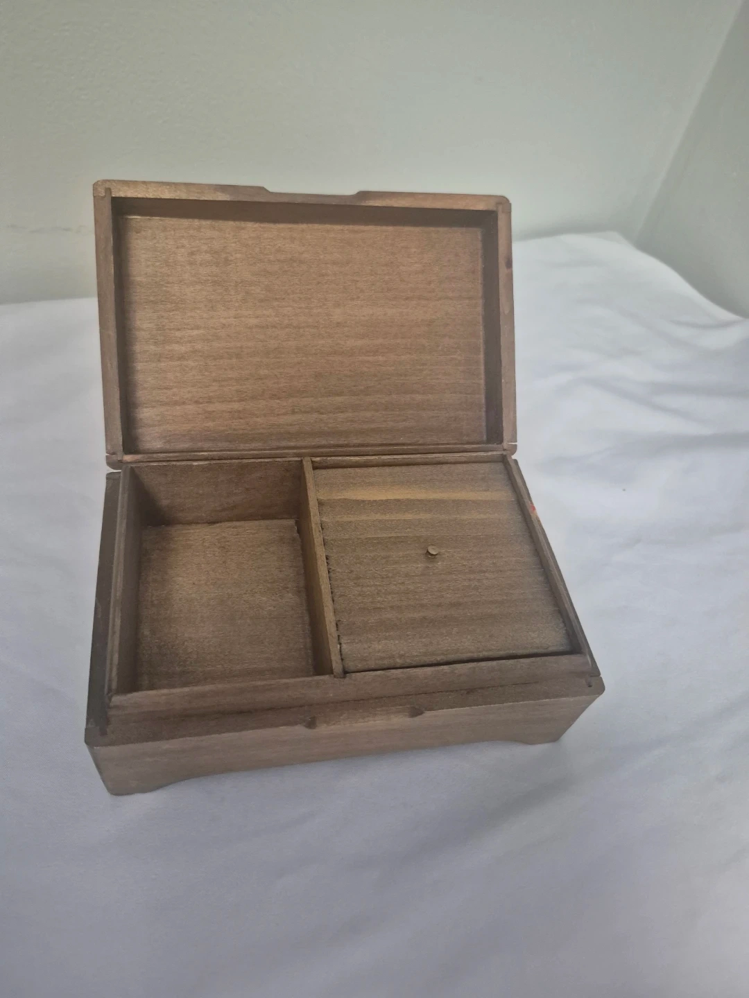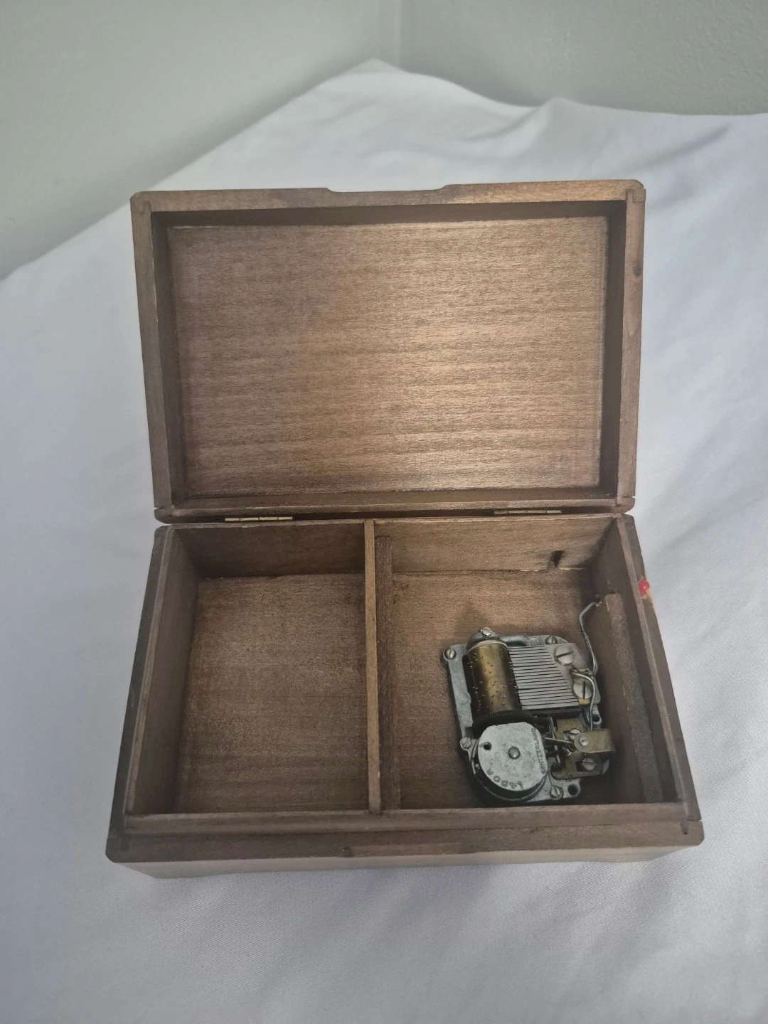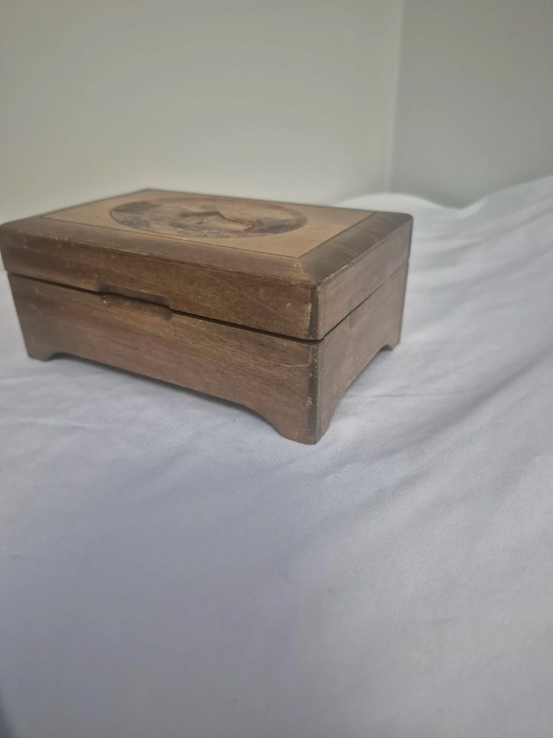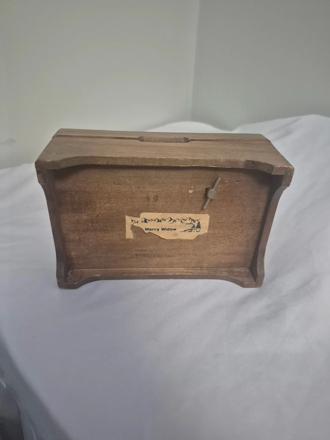 Selling a lovely vintage wooden music box! It plays the tune "Merry Widow". Dated back to 1901