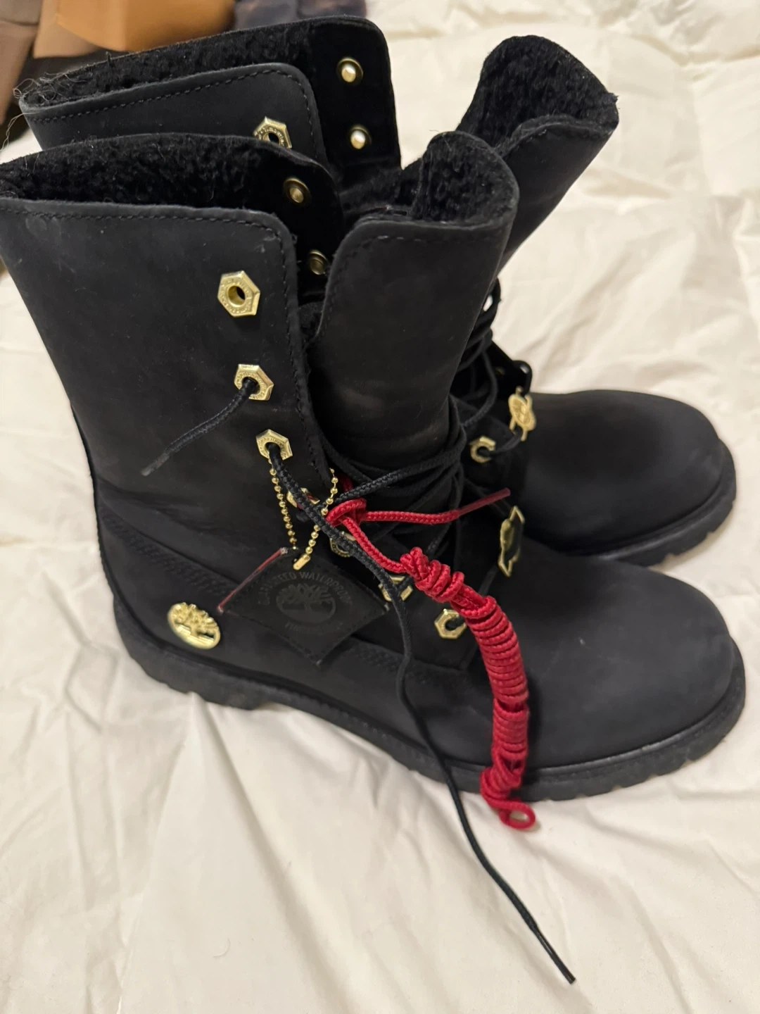 Selling a pair of Timberland boots in black! They have a lace-up closure and are in great condition. Perfect for the colder weather!