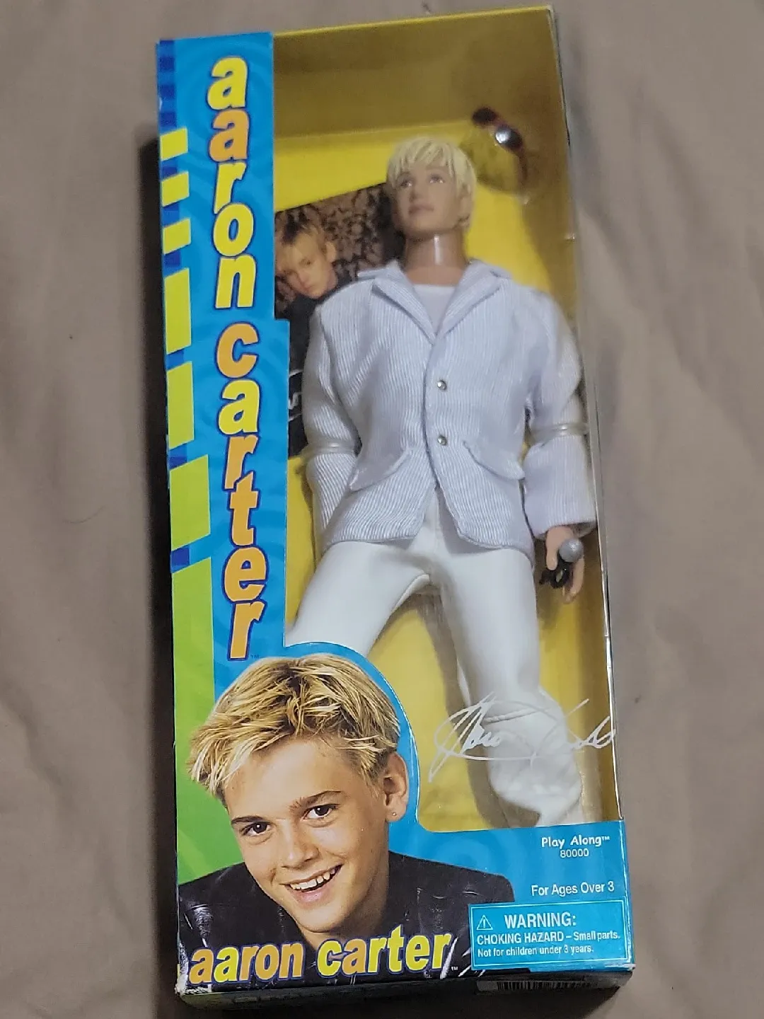 Selling an Aaron Carter doll by Play Along. It's still in its original box and appears to be in great condition. It's designed for ages over 3. A fun collectible for any 90s/early 2000s pop music fan!