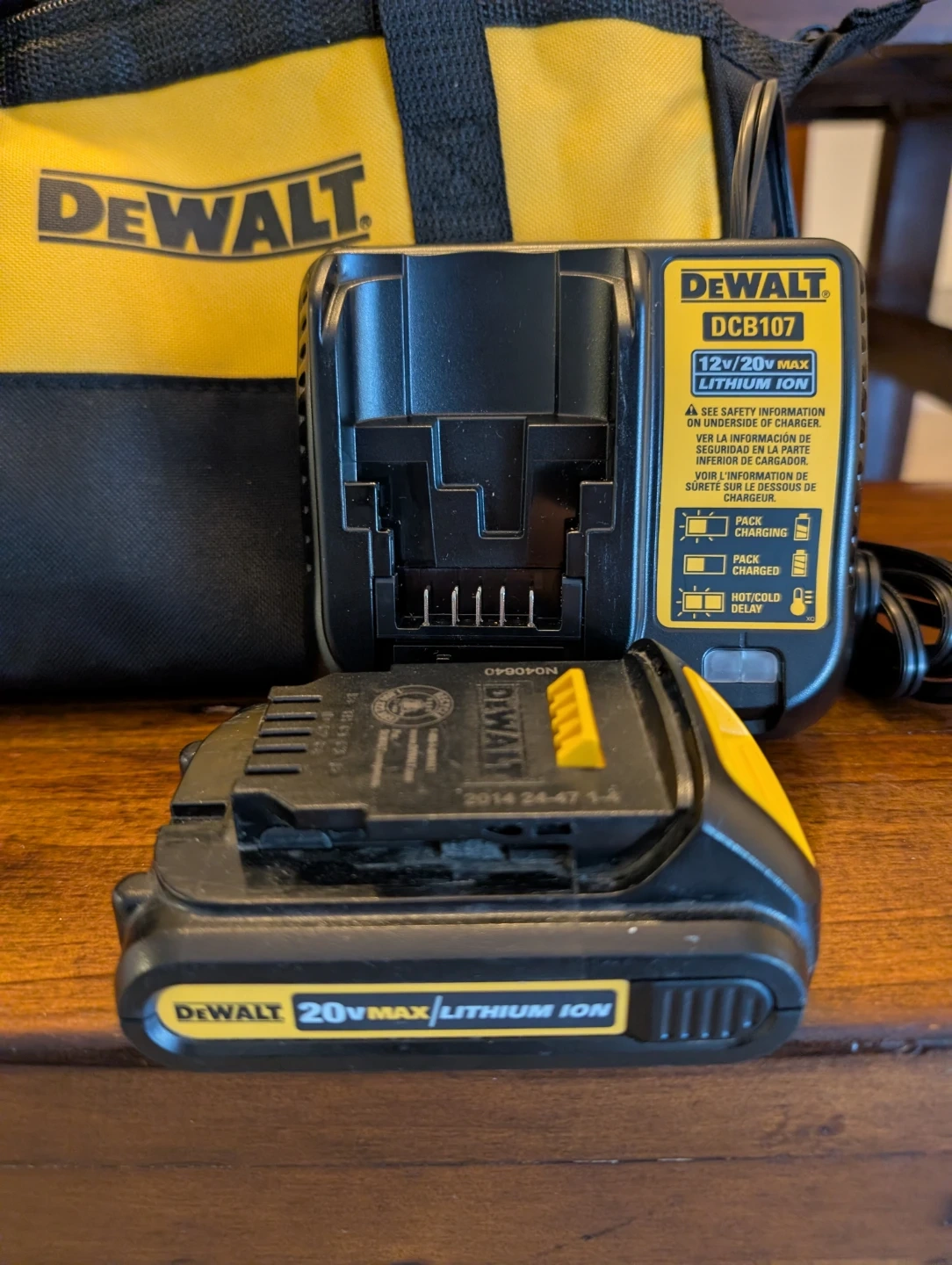 Selling a DeWalt 20V MAX Lithium Ion storage bag, 1x 1.5Amp hour battery and DCB107 charger.