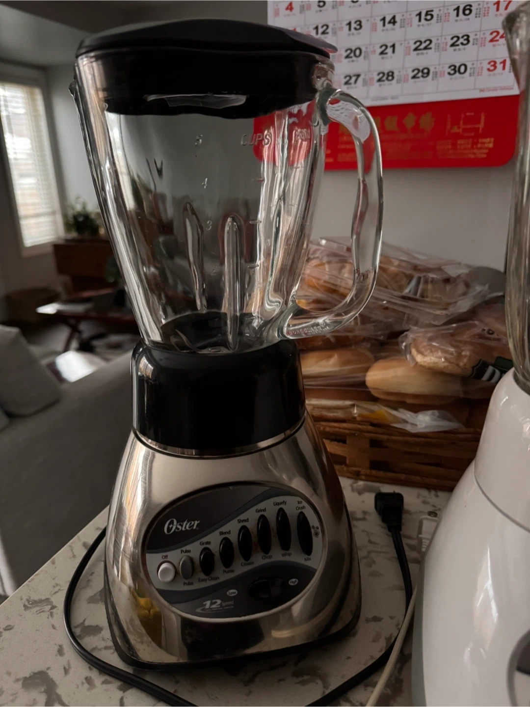 Selling an Oster blender with 12 speeds! It has settings for shredding, blending, grating, grinding, liquefying, ice crush, chop, whip, and mixing! The jar is marked with cup measurements.