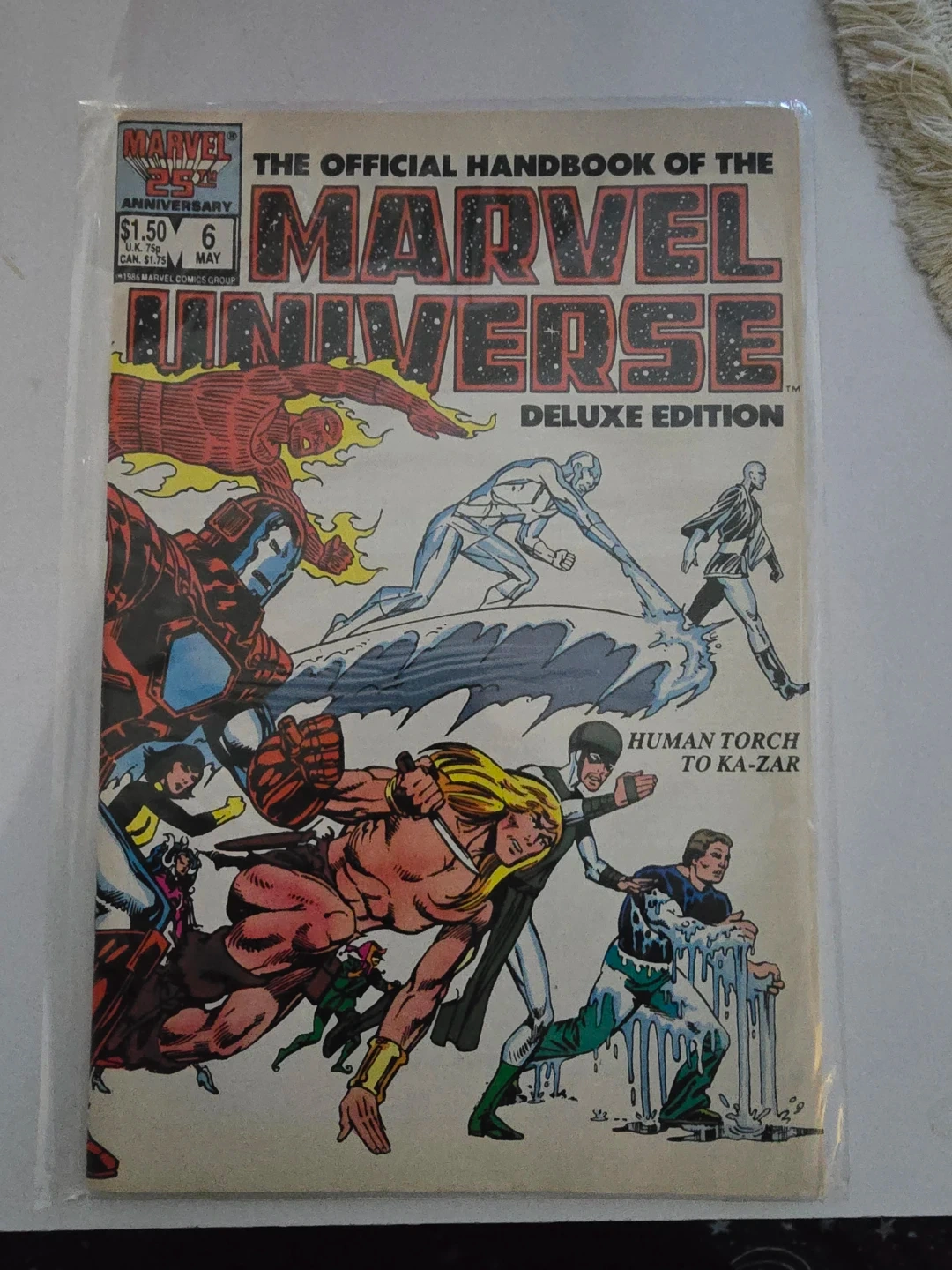 Selling The Official Handbook of the Marvel Universe Deluxe Edition comic book. A great addition to any comic collection!