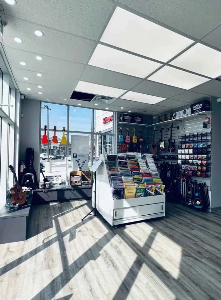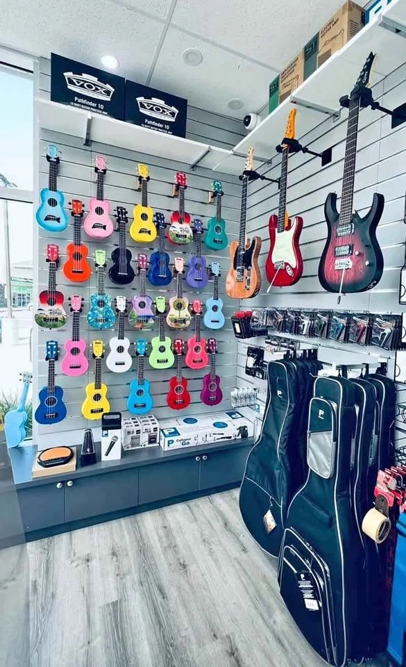 Piano, guitars, ukuleles, violins, wind instruments, drum kits.