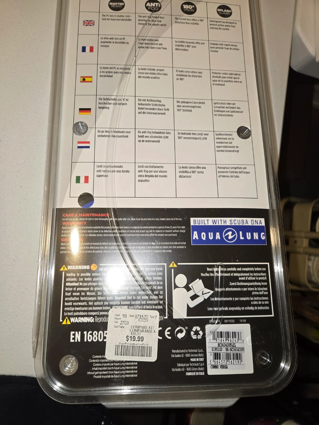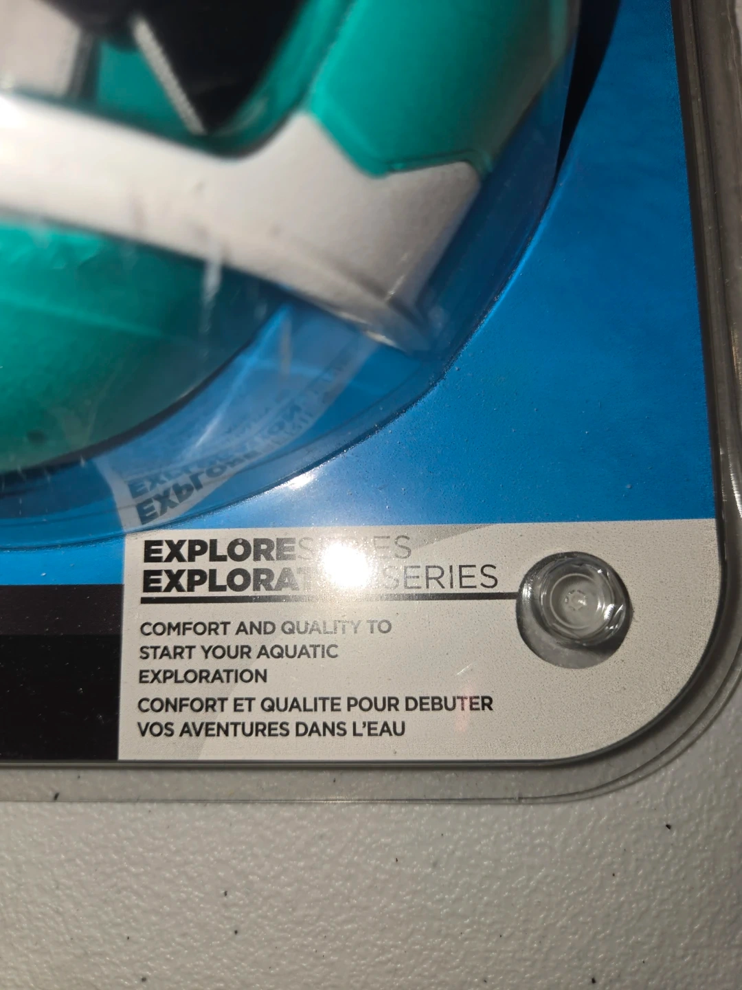 Get ready to explore the underwater world with this Aqua Lung Versa snorkel mask! It's designed for adults and comes in a stylish teal and white colour combo. The mask features anti-fog lenses providing clear vision, and offers a 180° vision field. Originally priced at $19.99.