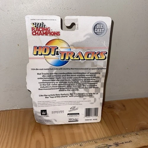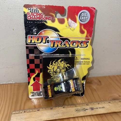 The Racing Champions Hot Tracks Rob Zombie toy vehicle is a diecast car featuring designs inspired by the famous musician Rob Zombie. Produced by Racing Champions, this collectible piece combines elements of contemporary manufacture with unique detailing that reflects both the world of music and the world of cars. Perfect for fans of Rob Zombie or diecast collectors, this toy vehicle is likely to appeal to those looking for a piece of memorabilia that combines their love for music and automobiles. See all pictures of item Sold as is
