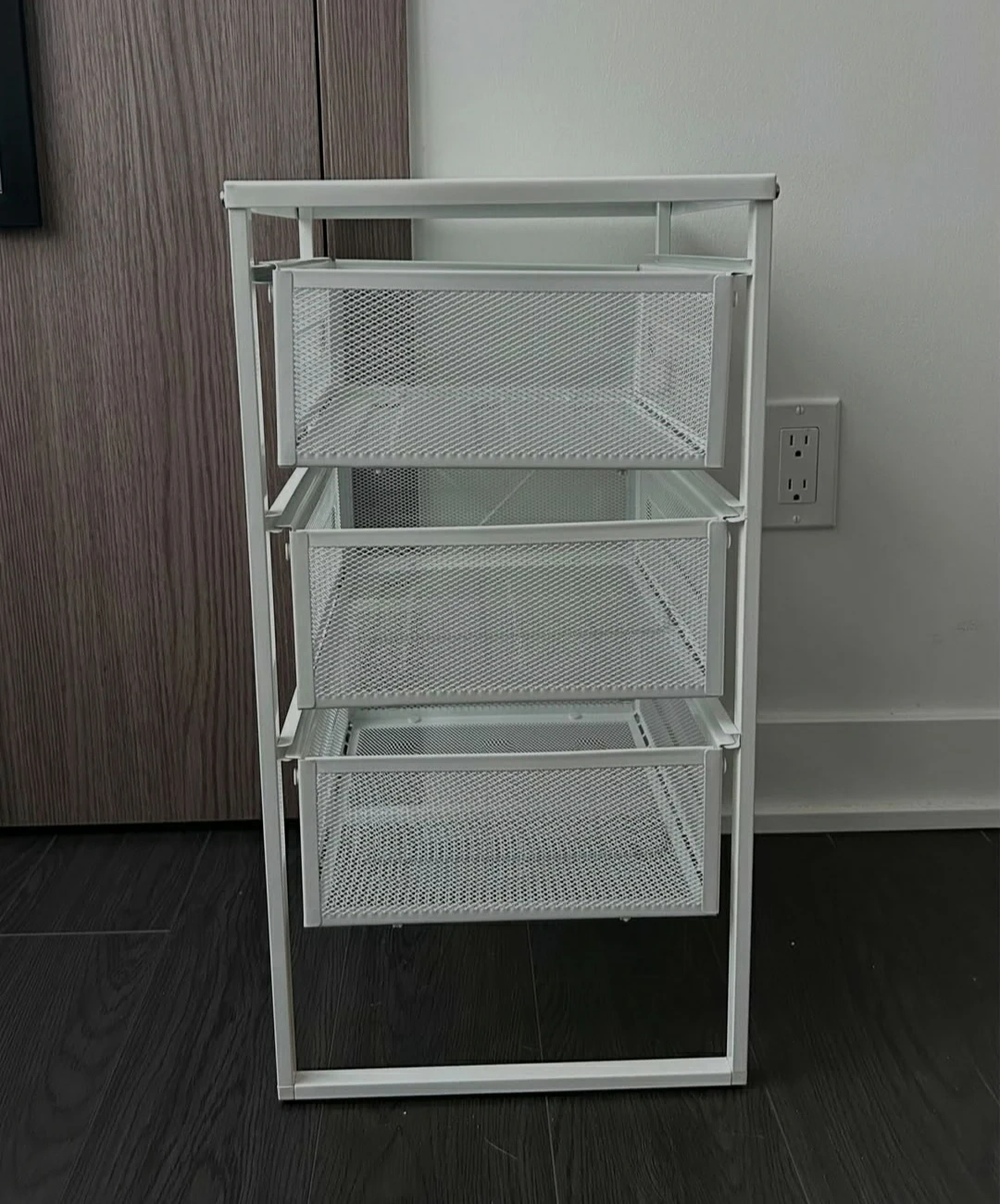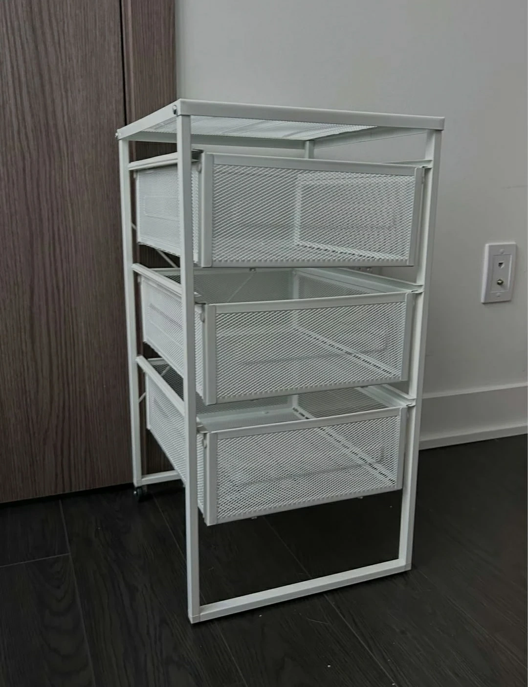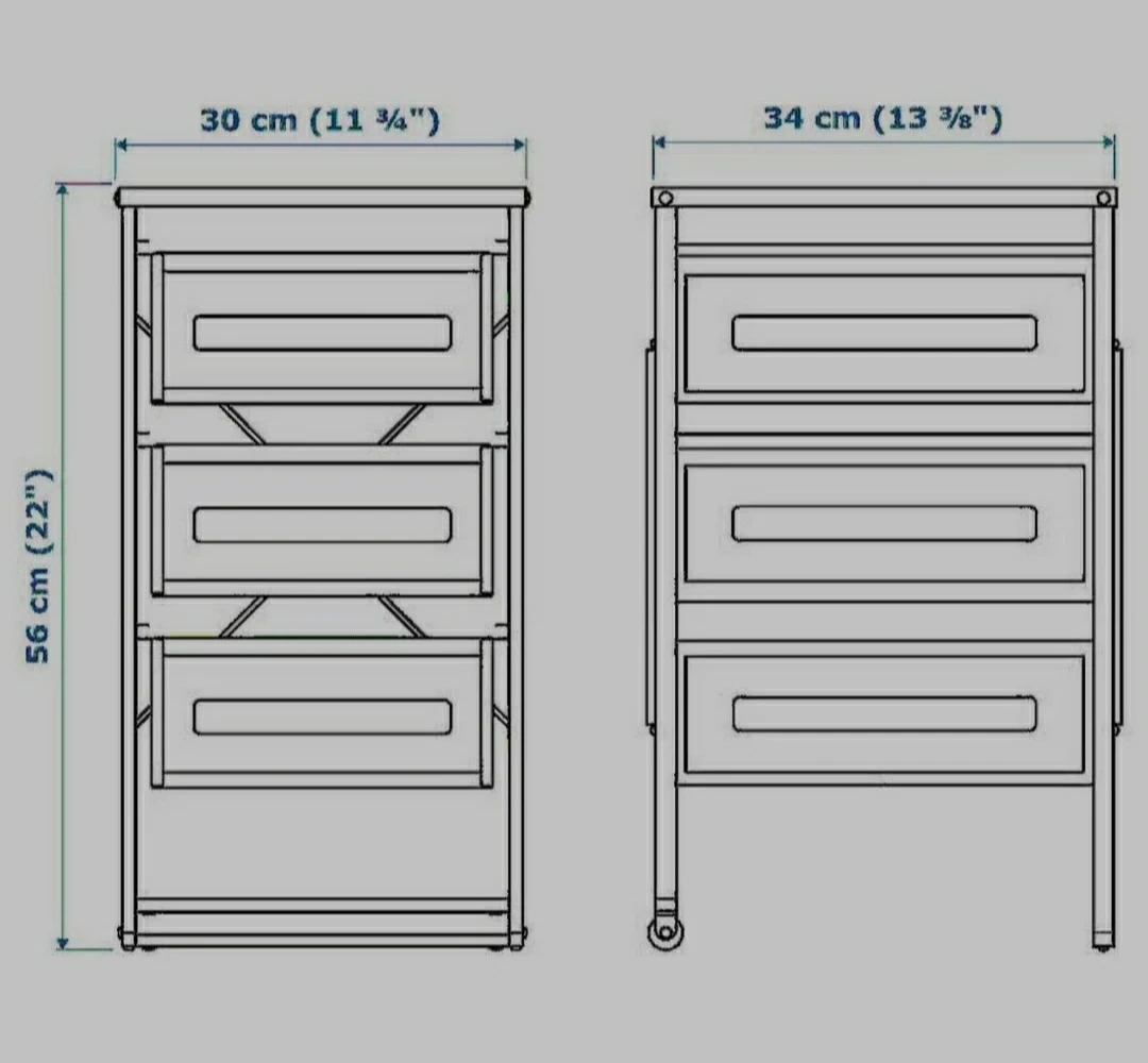 Selling a white IKEA Helmer drawer unit on casters! It has three drawers and is in great condition. Dimensions are 30 cm (11 3/4") wide, 34 cm (13 3/8") deep, and 56 cm (22") high. Perfect for organising items in any room!