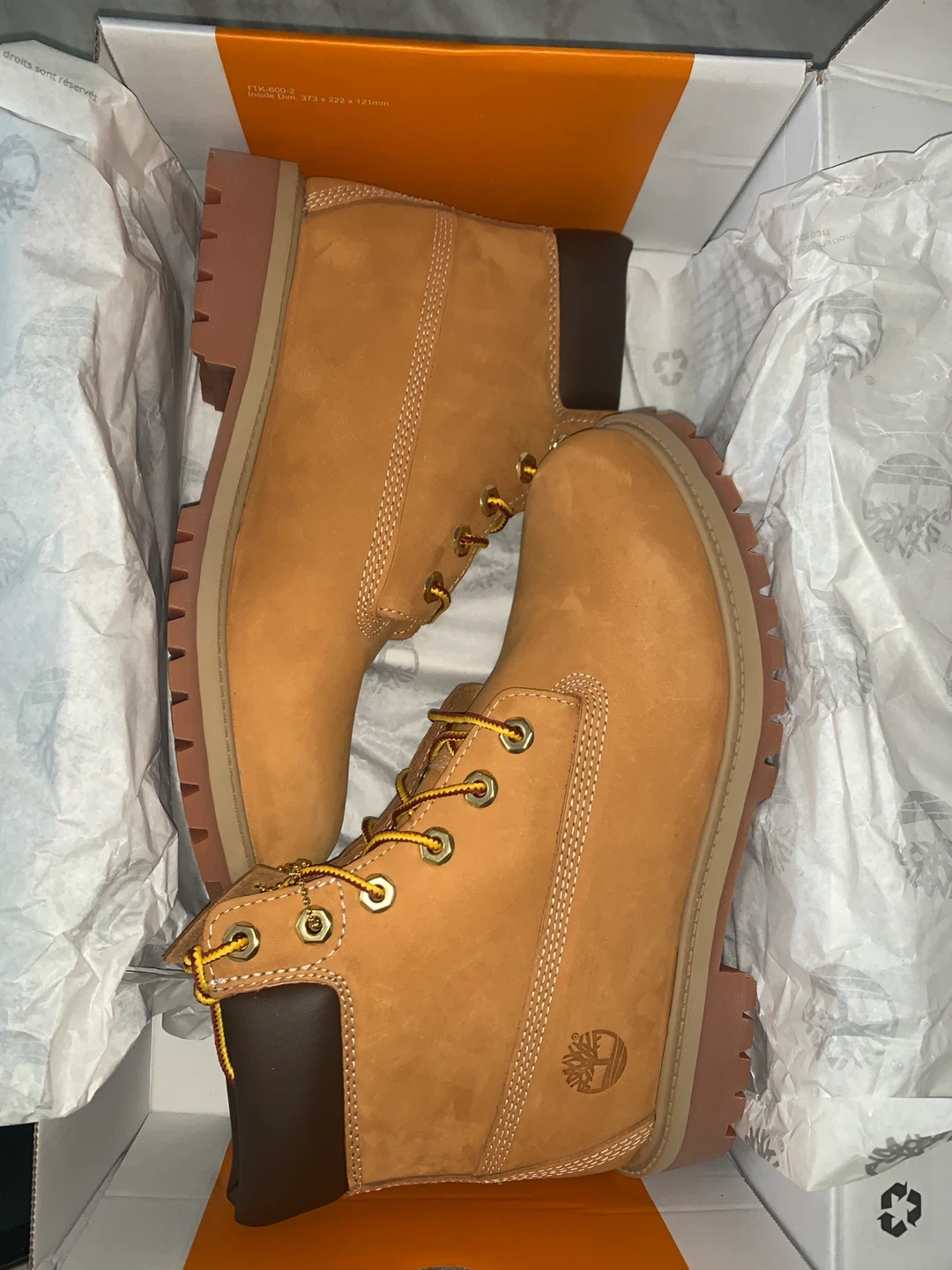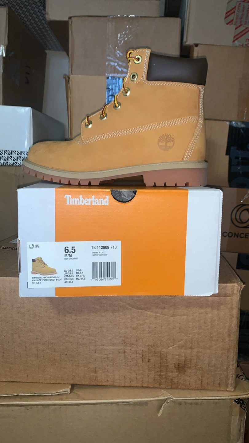 Get ready to step out in style with these classic Timberland boots! These are a size 6.5M in US sizing and come in the iconic wheat nubuck color. They are waterproof, so you can wear them in any weather. The boots come with the original box.