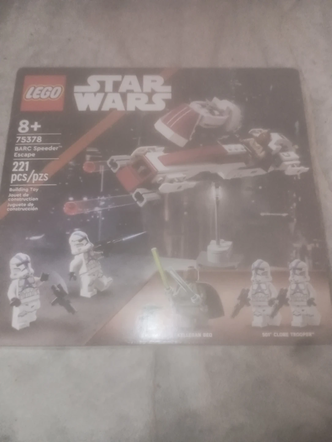 Selling a LEGO Star Wars BARC Speeder Escape set (75378)! This building toy includes 221 pieces. It's recommended for ages 8 and up. Perfect for Star Wars fans and LEGO enthusiasts