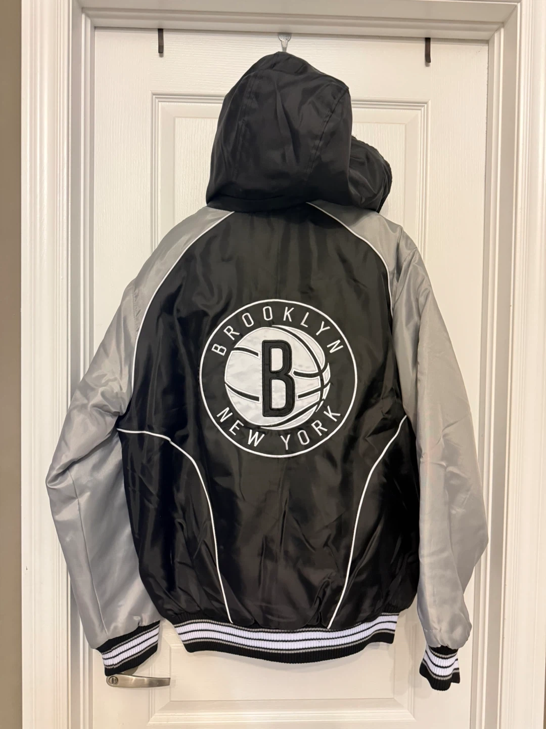 Selling a gently used NBA Brooklyn Nets jacket by G-III Sports by Carl Banks. It's a size M and features the Nets logo on the front and back. The jacket is in great condition and perfect for any Nets fan!