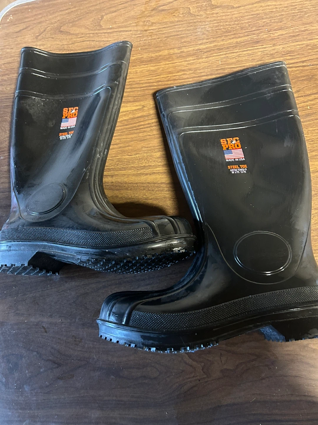 Selling a pair of SEC PRO black work boots with steel toe protection. These boots are made in the United States. ideal for anyone needing reliable foot protection on the job /water proof