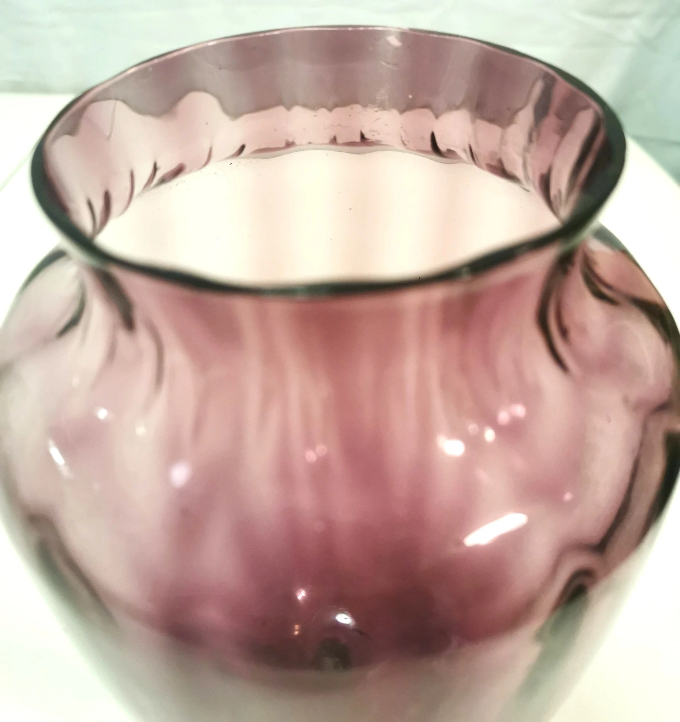 1960 Empoli Italy Amethyst Purple Optic Ribbed Glass Vase 10.75"