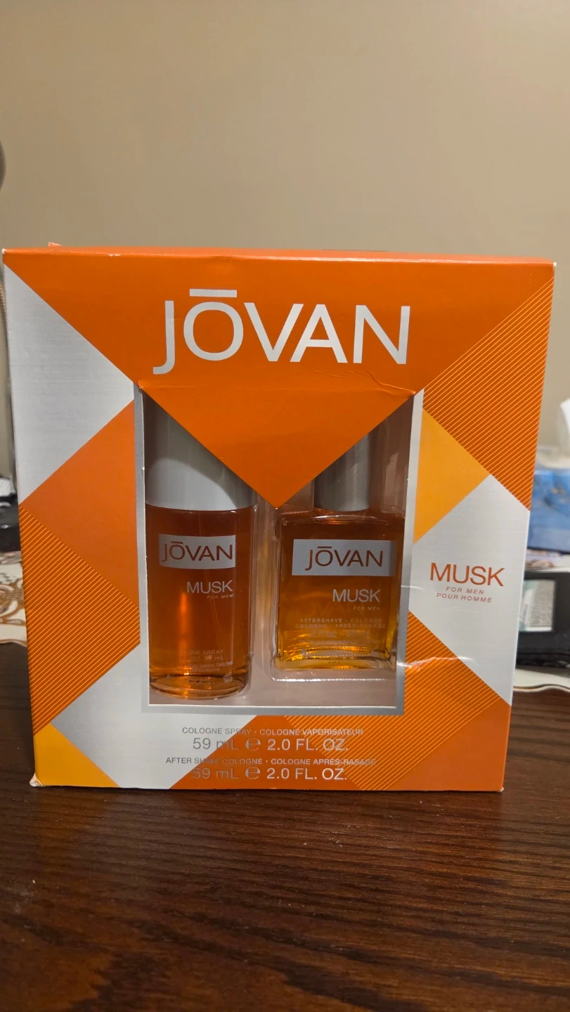 Selling a JOVAN Musk set for men, which includes cologne spray and aftershave cologne. Each bottle contains 59 mL (2.0 FL OZ).