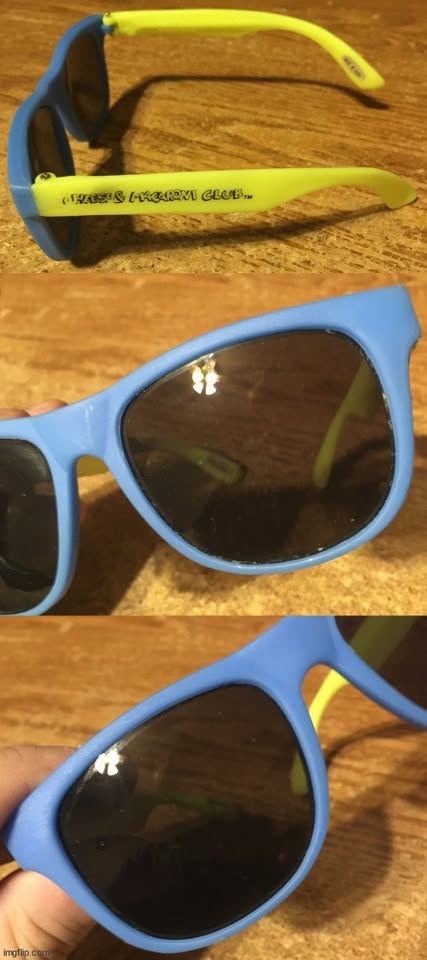 KRAFT CHEESE AND MACARONI CLUB PLASTIC SUNGLASSES GREEN AND BLUE