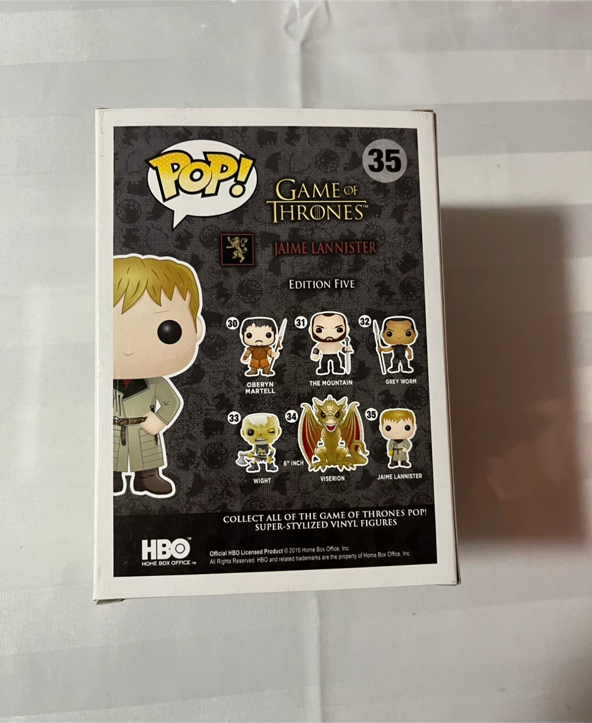 Selling a Funko Pop! figure of Jaime Lannister from Game of Thrones. This is number 35 in the series. The figure comes in its original box and is in great condition!