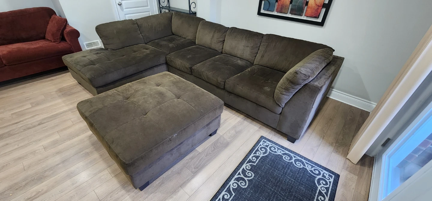 Brown Sectional Couch with Ottoman