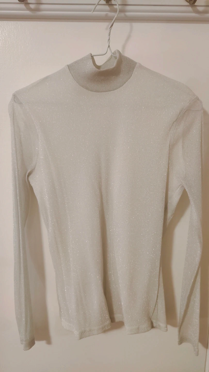 A lovely white long sleeve top with a sparkly finish! It's in great condition and ready for a new home in your wardrobe