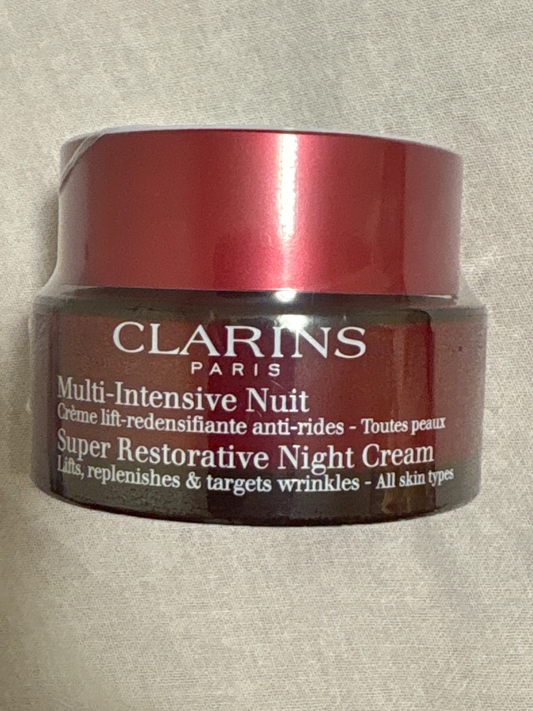 Selling brand new sealed, a Clarins Multi-Intensive Nuit Super Restorative Night Cream. It's a crème lift-redensifiante anti-rides for all skin types. Lifts, replenishes & targets wrinkles