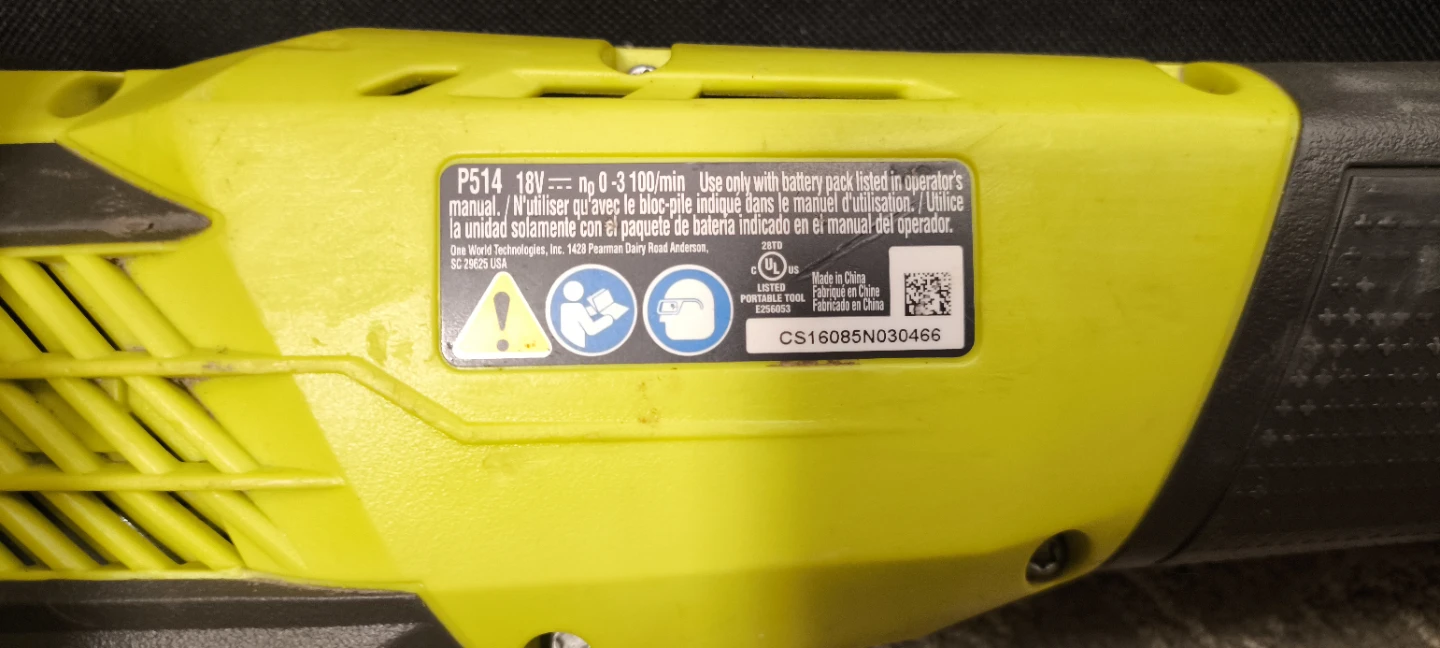 • Ryobi P514 – Reciprocating Saw (Sawzall type)