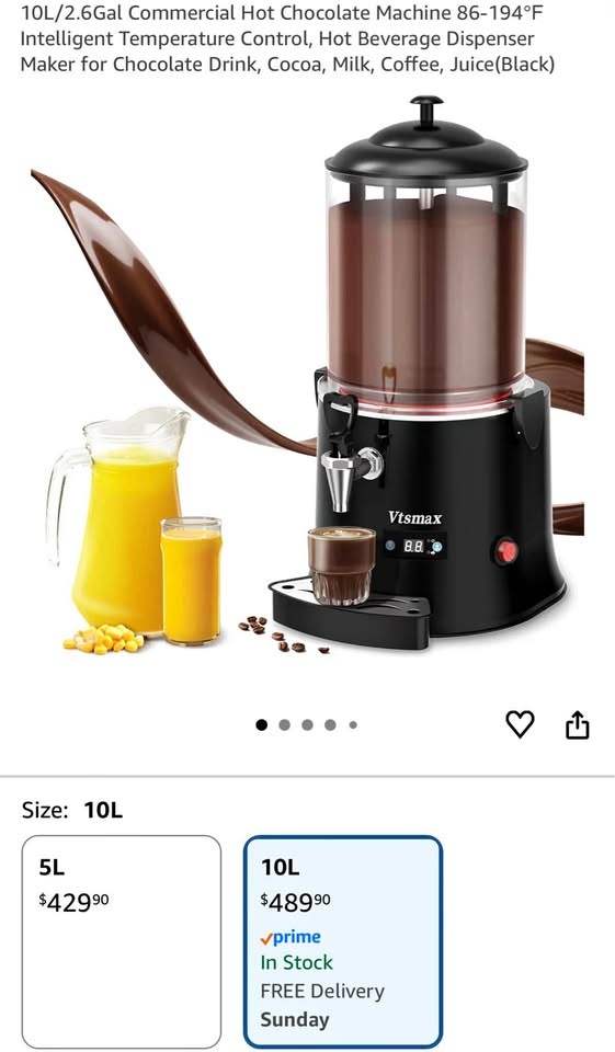 Buy & Sell10L Commercial Hot Chocolate Machine10L Commercial Hot Chocolate Machine$350New 10L (2.6 gal) commercial hot chocolate & hot beverage dispenser with adjustable temperature control.WHERE TO MEETCheck LocationView MapSELLERRoseLawfield11410 reviews0 chats·0 favorites·11 viewsSEND CHAT TO SELLERHi Rose! I’m interested in your listing.Hi Rose! I’m interested in your listing.Get the Karrot app to chatSign In to chat