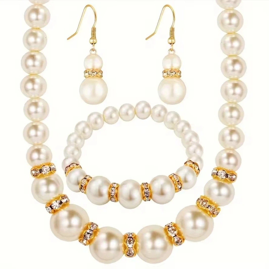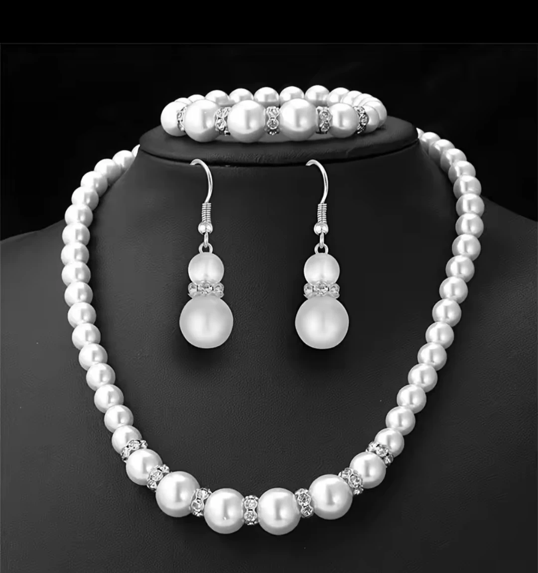Pearl Necklace, Bracelet & Earring Set